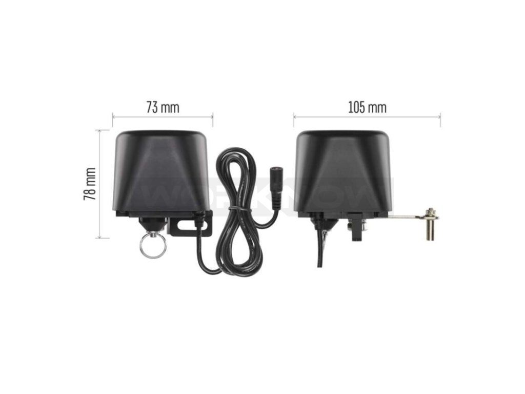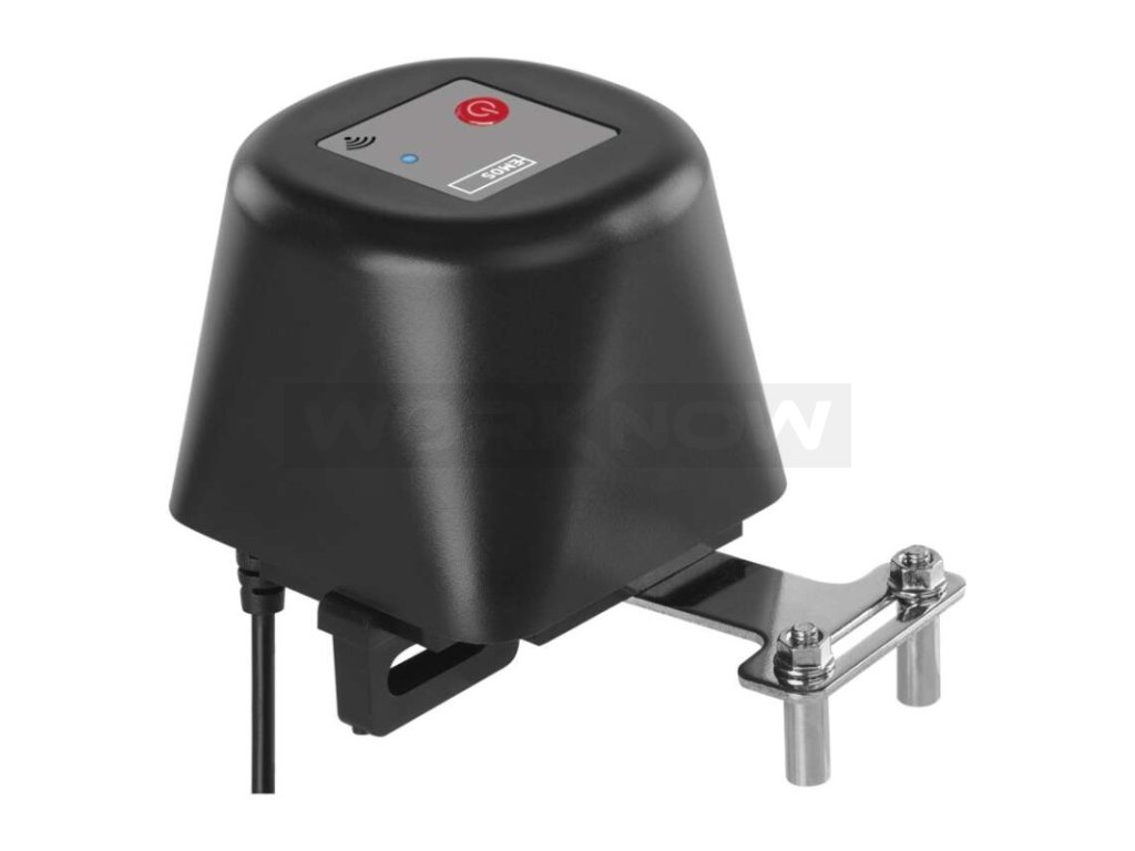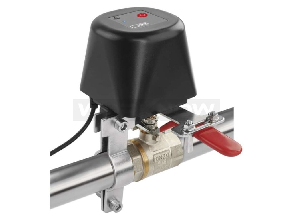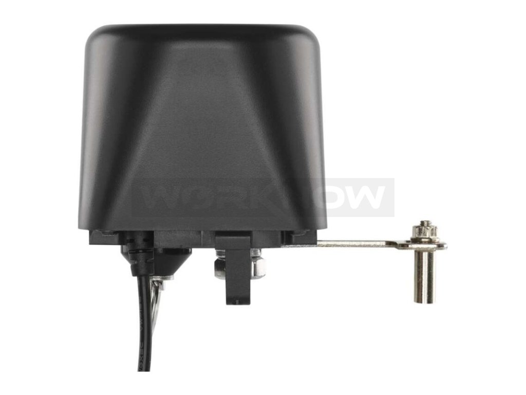 Bezdrátově řízený motorový ovladač pákového ventilu. Umožňuje vzdálené zavírání/otevírání ventilu vody nebo plynu.