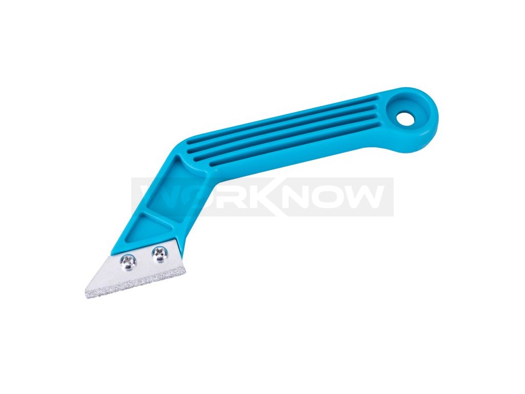 Čistič spár, rozměr : délka brousící planžety 50 mm, brusná část planžety - syntetický diamant, použití : pro čištění spár obkladů a dlažeb před spárováním, nebo při odstranění staré spárovací hmoty, plastová ergonomická rukojeť pro příjemné a pevné držení, planžety uchycena pevným šroubem - uvonění odolává i silnému mechanickému namáhání, náhradní planžeta v balení - objednací číslo 37009, balení : karta s eurootvorem.