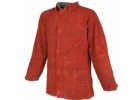 Svářečská zástěra s krytými rameny, vyrobena z hovězí štípenky s kevlarovými švy a koženými řemínky. Barva šedá, splňuje normy EN 13688 a EN 11611 A1. Velikost 105 x 72 cm.