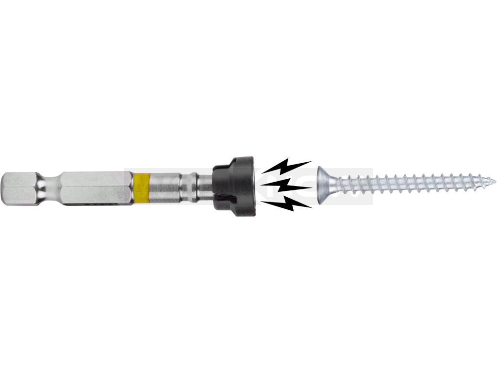 - extra silný magnet v kloboučku udrží i velmi dlouhé vruty bezpečně zakotveny v profilu hrotu, což dovoluje manipulaci v různých směrech bez nutnosti vrut přidržovat - tím je zvýšeno pohodlí a efektivita při práci