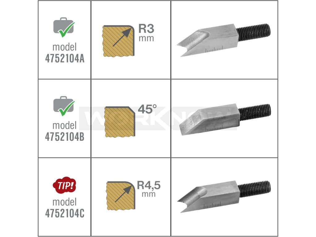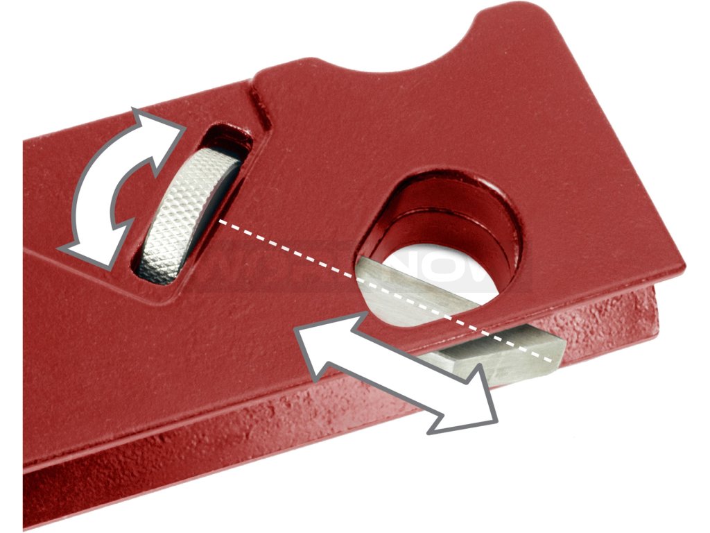 - celokovové provedení s nastavitelnou hloubkou nože při úběru materiálu (srážené/začišťované hrany)
