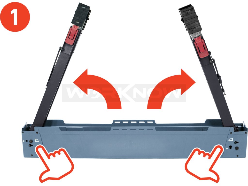- na každý z konců je možno umístit boční úchyt s fixní šířkou 45mm k případnému uchycení trámkových dřevěných profilů a následnému rozšíření pracovní plochy mezi dvě kozy.
