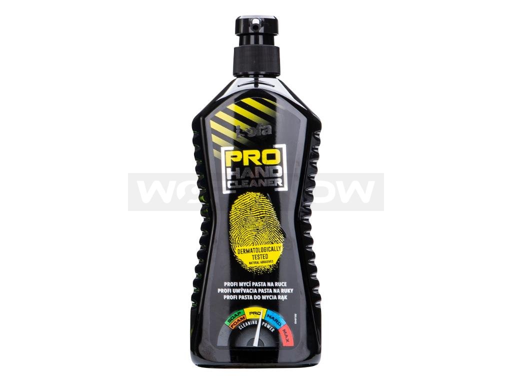 Profesionální tekutá mycí pasta na mytí znečištěné pokožky. Jeho předností je schopnost rychle a velmi šetrně odstranit nečistoty z vašich rukou. Určený k odstranění odolných nečistot jako jsou maziva, brzdové usazeniny, cement, rez, tmely a další. Používá se zejména v automobilovém a stavebním průmyslu. Nová receptura je založená na přírodních abrazivech a neobsahuje barviva. Použití: Na mírně navlhčené ruce naneste přiměřené množství přípravku. Pečlivě roztírejte. Uvolněné nečistoty dobře opláchněte vodou a osušte.