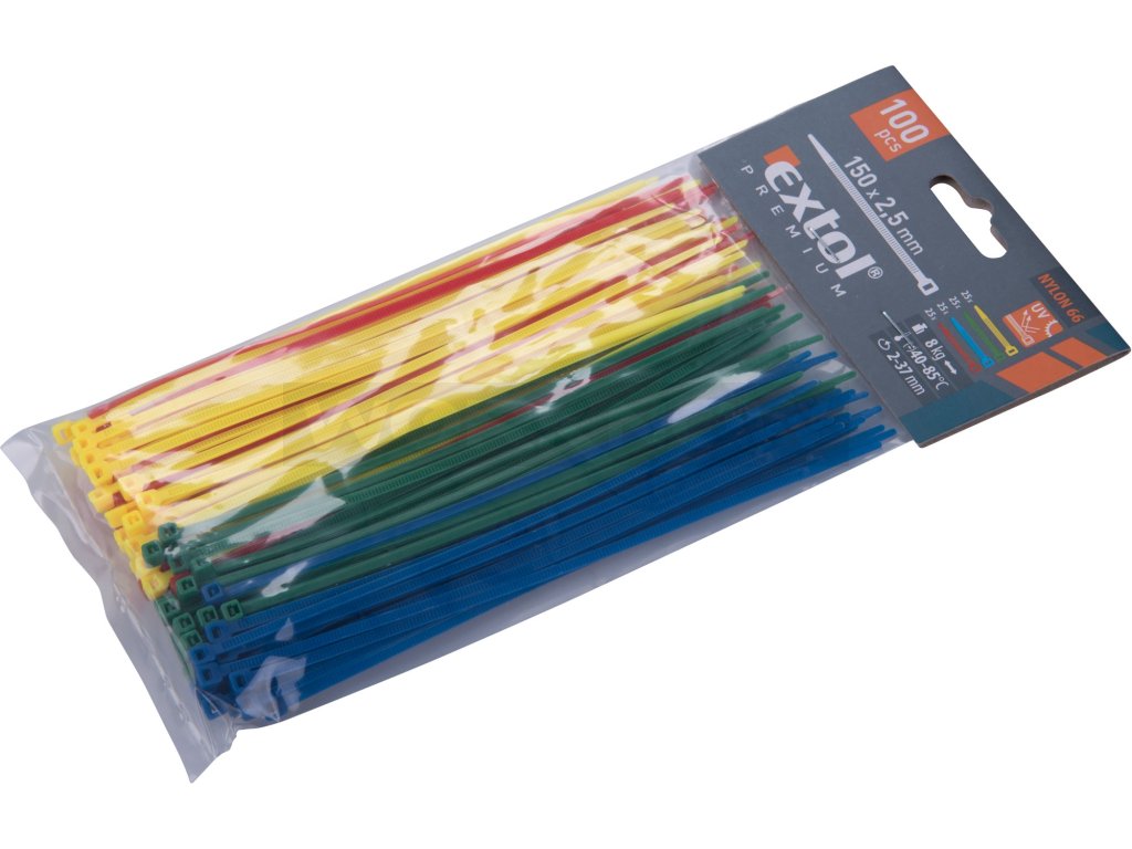 Pásky stahovací barevné, 150x2,5mm, 100ks, (4x25ks), 4 barvy, nylon PA66