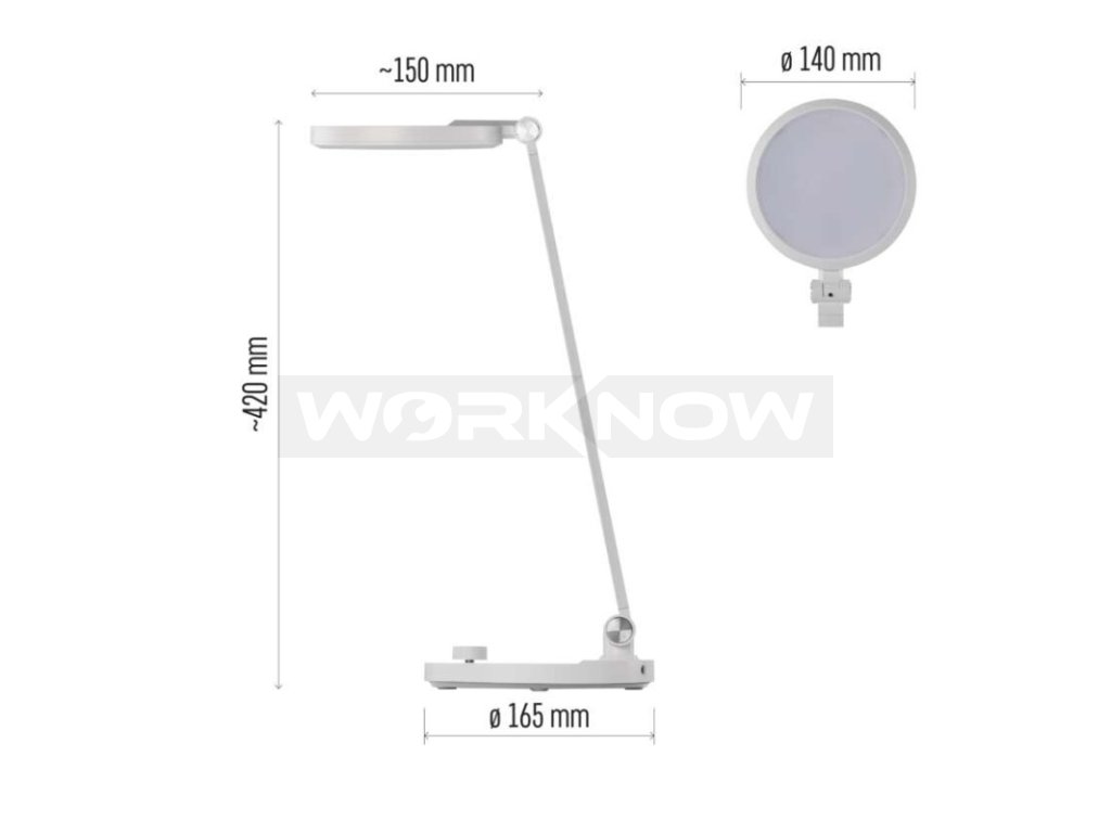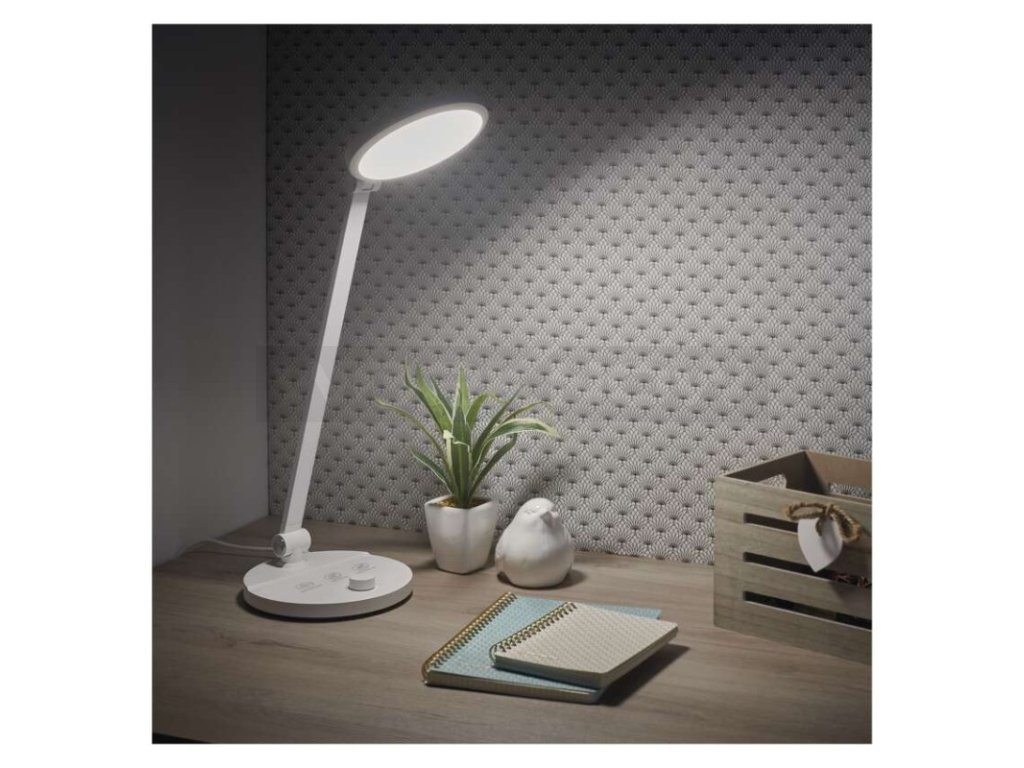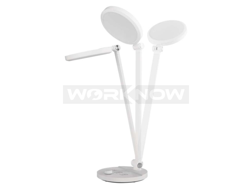Díky dvěma otočným kloubům lze lampičku nastavit přesně dle preferencí. Jednoduché ovládání otočným tlačítkem. Napájení přes adaptér, který je součástí balení. Elegantní černé/bílé provedení je vhodné do všech typů interiérů. Konstrukce je pevná a stabilní. Při namíření reflektoru proti sobě lze využít i jako soft box – čelní světlo pro videohovory či přídavné světlo při fotografování „selfies".