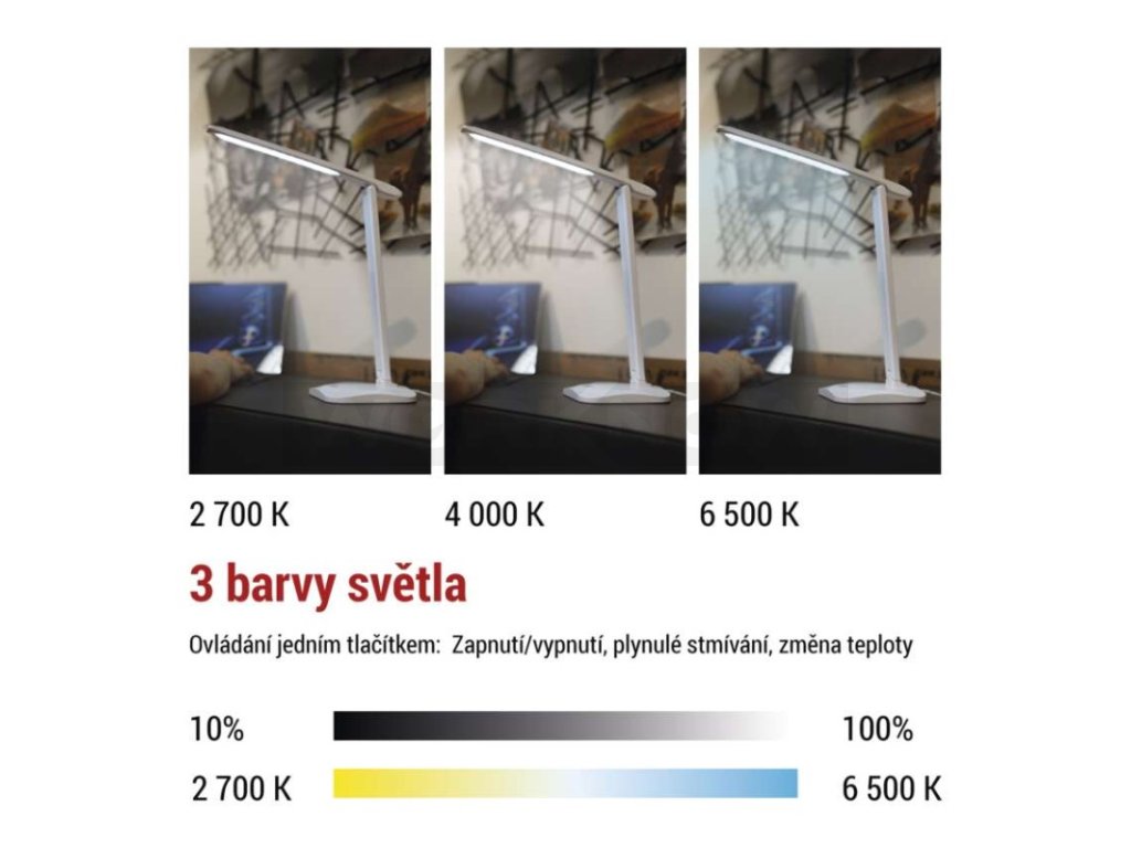 Na ovládacím panelu si můžete zvolit intenzitu a odstín svícení.