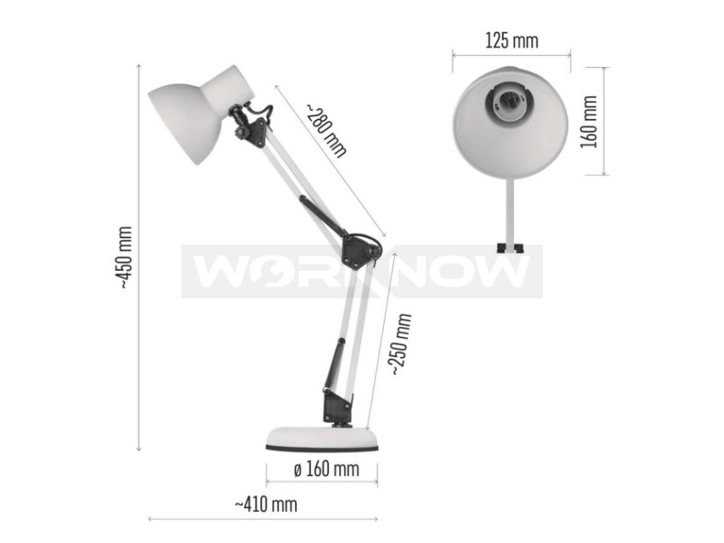 Lampička s kovovým tělem a rozměrem 480 x 155 x 330 mm je určena na žárovku E27, kterou můžete kdykoliv sami snadno vyměnit a vybrat si libovolnou barvu světla žárovky tak, aby bylo světlo co nejpříjemnější pro vaše oči.
