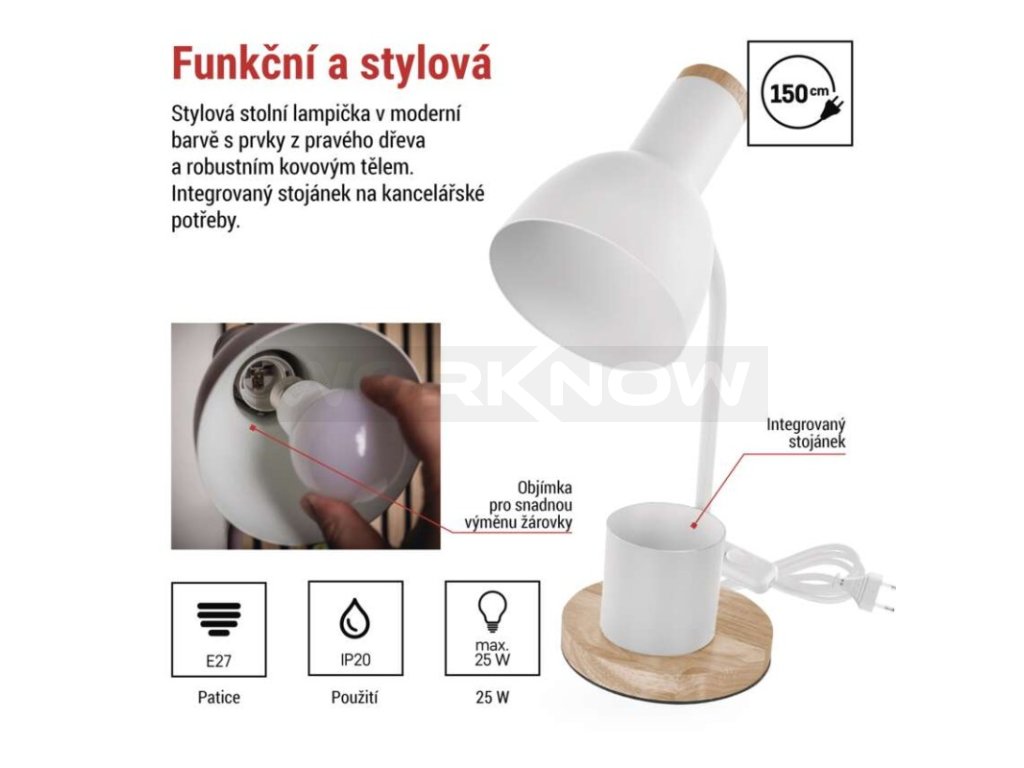 Stolní lampa POPPY na žárovku E27, bílá