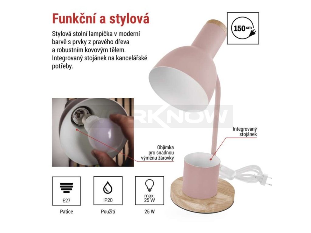Stolní lampa POPPY na žárovku E27, růžová