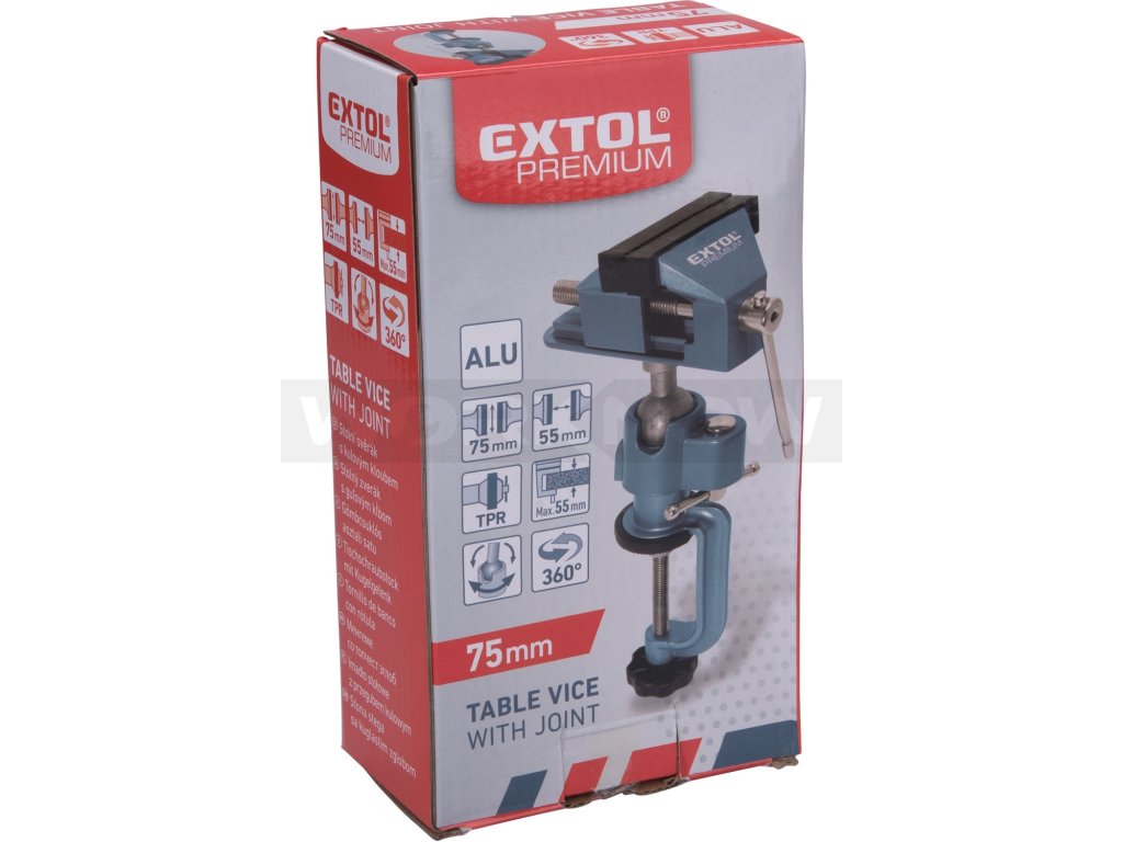 - tělo svěráku je vyrobeno z hliníku a čelisti jsou opatřeny odnímatelnými pryžovými krytkami; kloub s fixací dovoluje nastavení téměř ve všech směrech