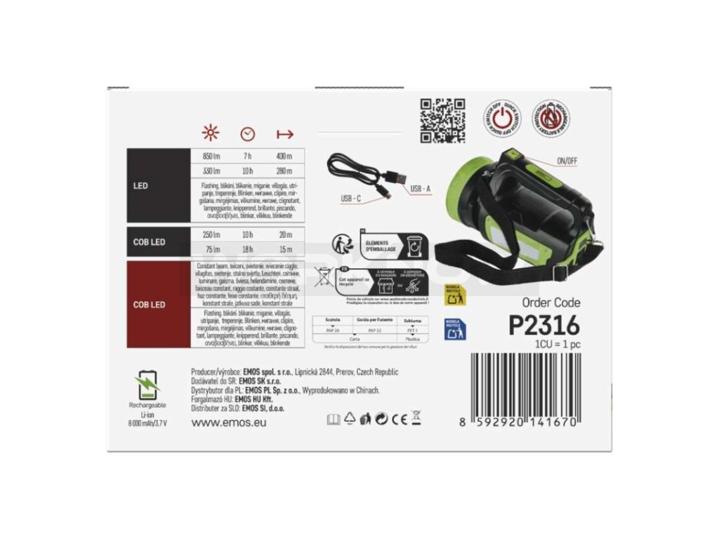 LED nabíjecí svítilna P2316, 850 lm, 8000 mAh