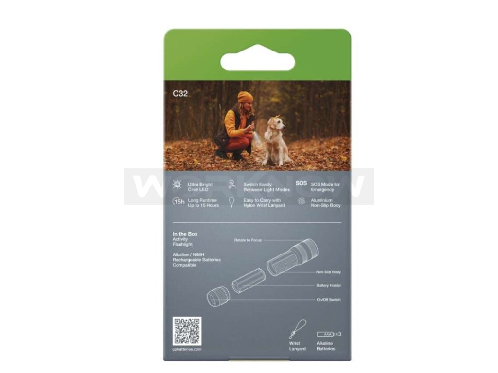 Na první pracovní směnu nastoupí 3 mikrotužkové baterie GP Ultra (součást balení), které poskytují o 30 % více energie než běžné alkalické baterie. Díky moderní elektronice svítilna GP C32 skvěle funguje i s nabíjecími bateriemi (co se týká světelného výkonu i výdrže). Jedna sada AAA vám dodá chybějící světlo až na 15 hodin.