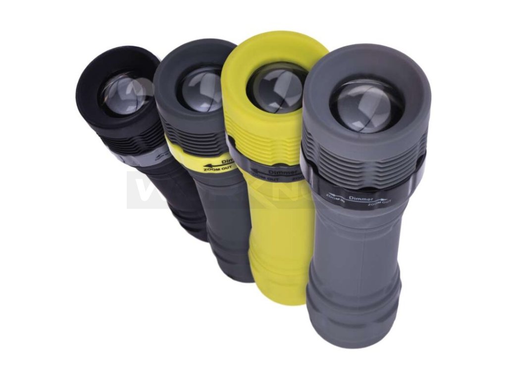 Fokus, který slouží pro změnu světelného kuželu tzn. buď ho zúží, daný dosvit je na maximální úrovni, nebo ho rozšíří a světelný kužel je na maximální úrovni. Krytí IP43. Nárazuvzdorná do 1 m.