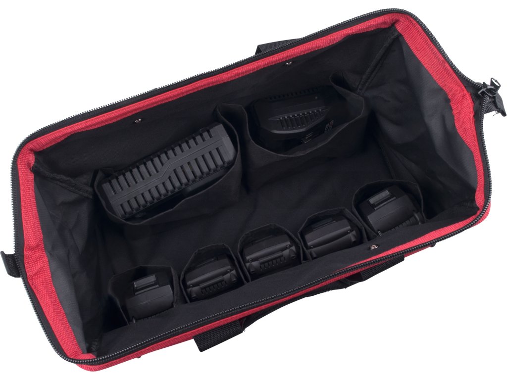 | Doplňující parametr: | 3 kapsy pro baterii do 4Ah, 2 kapsy pro baterii do 6Ah, 2 kapsy pro nabíječku, 2 vnější kapsy |