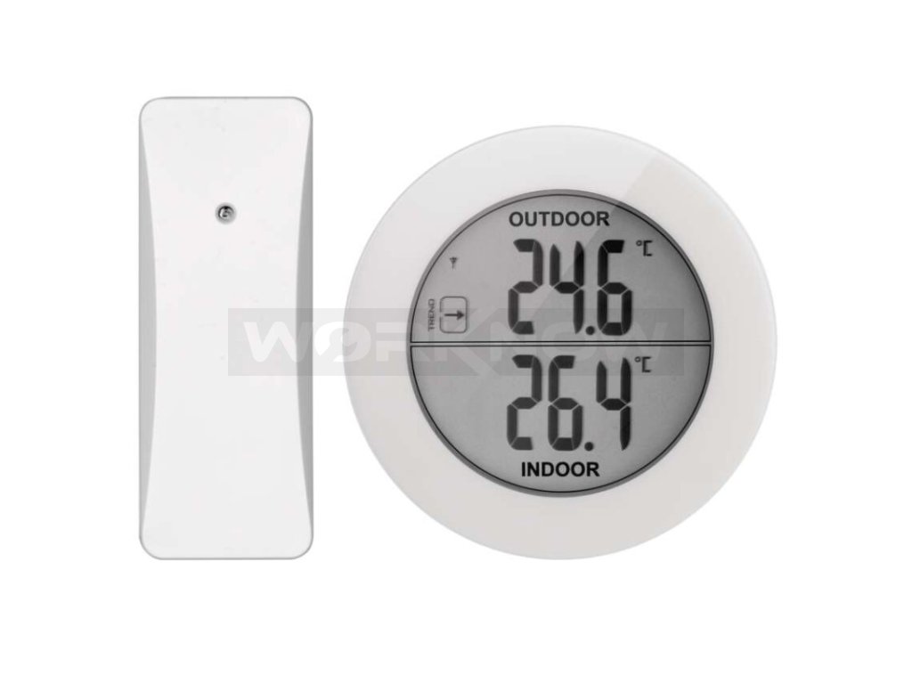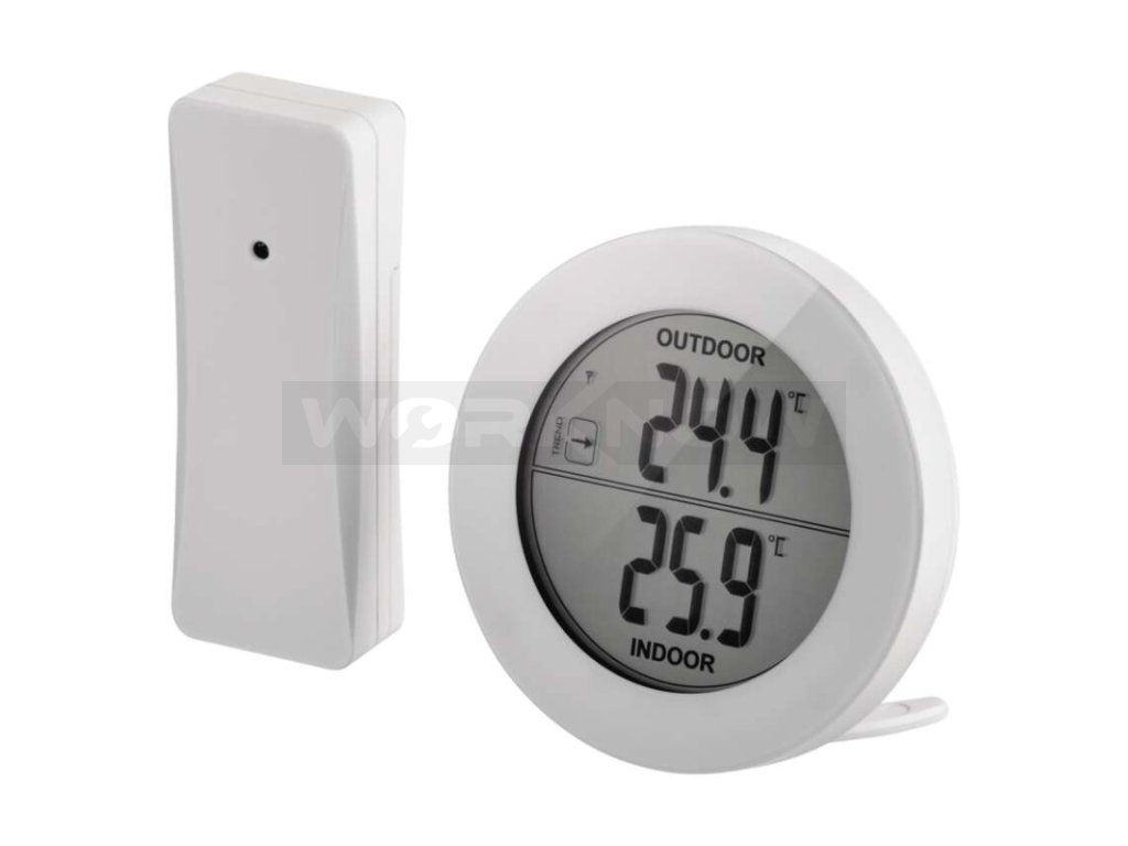 Bezdrátový teploměr, který měří vnitřní a venkovní teplotu. K teploměru se připojuje jedno bezdrátové čidlo s dosahem až 80 m.