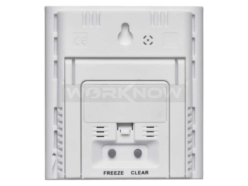 Digitální teploměr s drátovou sondou. Teploměr zaznamenává vnitřní a venkovní teplotu, vnitřní vlhkost, min. a max. teplotu a varuje před námrazou. Sonda teploměru má délku 2 m.