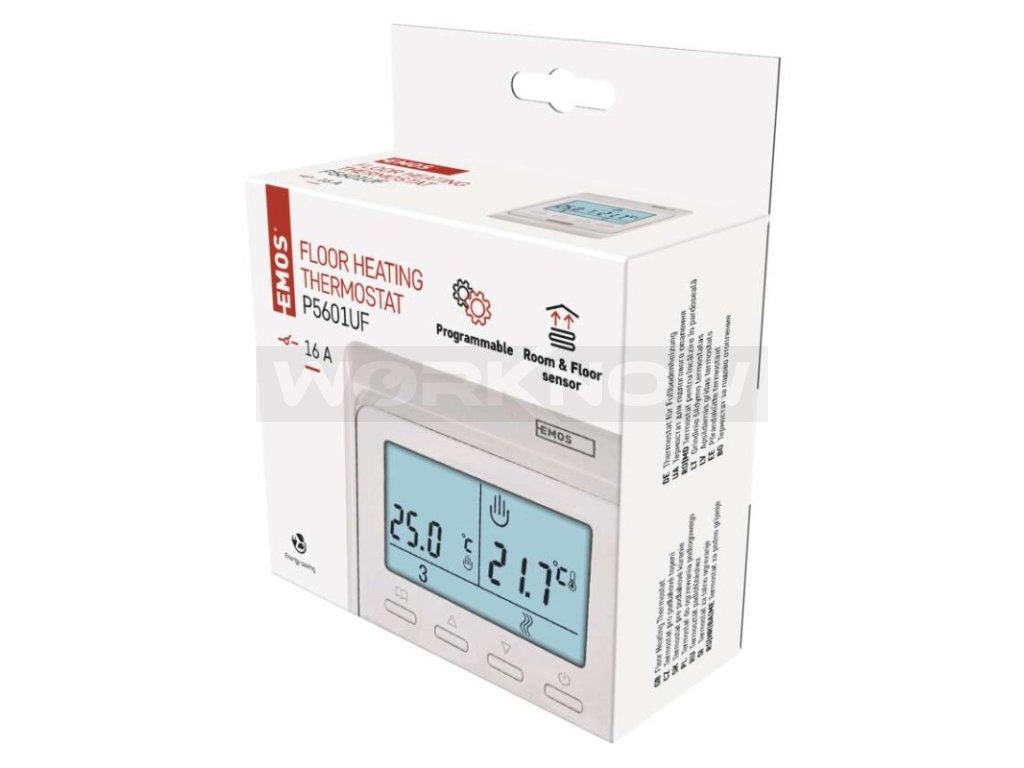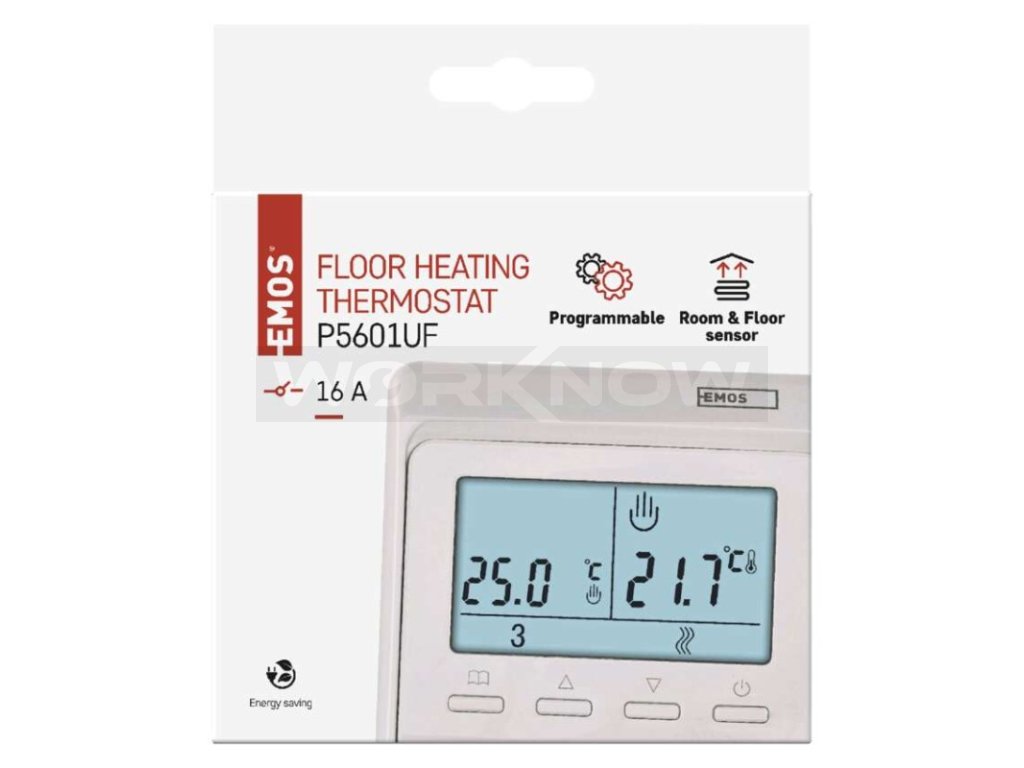 Programovatelný termostat je vybaven 3 metry dlouhým kabelem, který díky své délce pohodlně uložíte do podlahy ke svému podlahovému vytápění. V chladných zimních dnech udržuje ideální teplotu a zabraňuje tak nákladnému a nezdravému přetápění. Díky tomuto termostatu si můžete dopřát pocit dokonalé pohody.