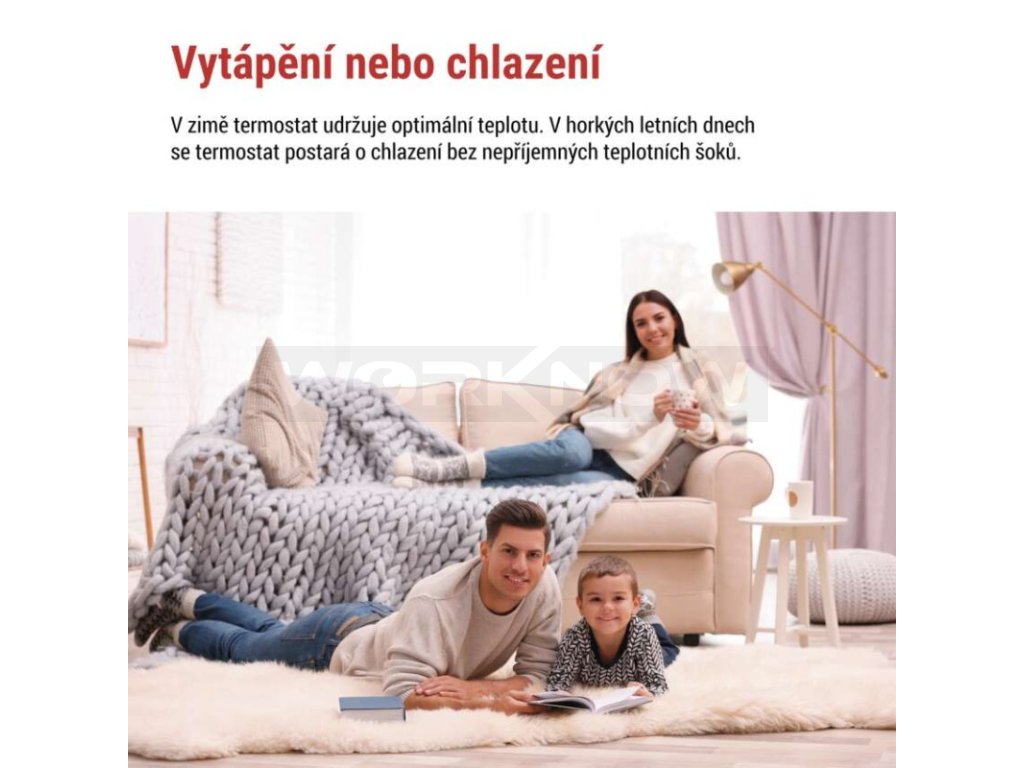 | Typ ovládání: | programovatelný elektronický pokojový termostat |
