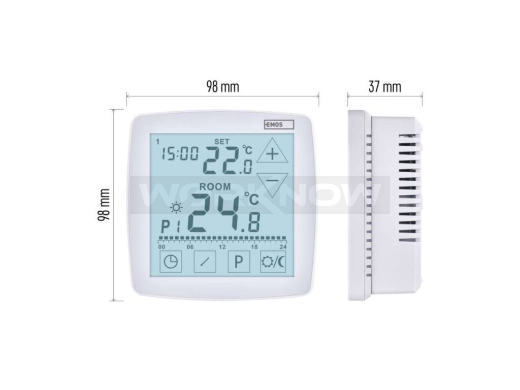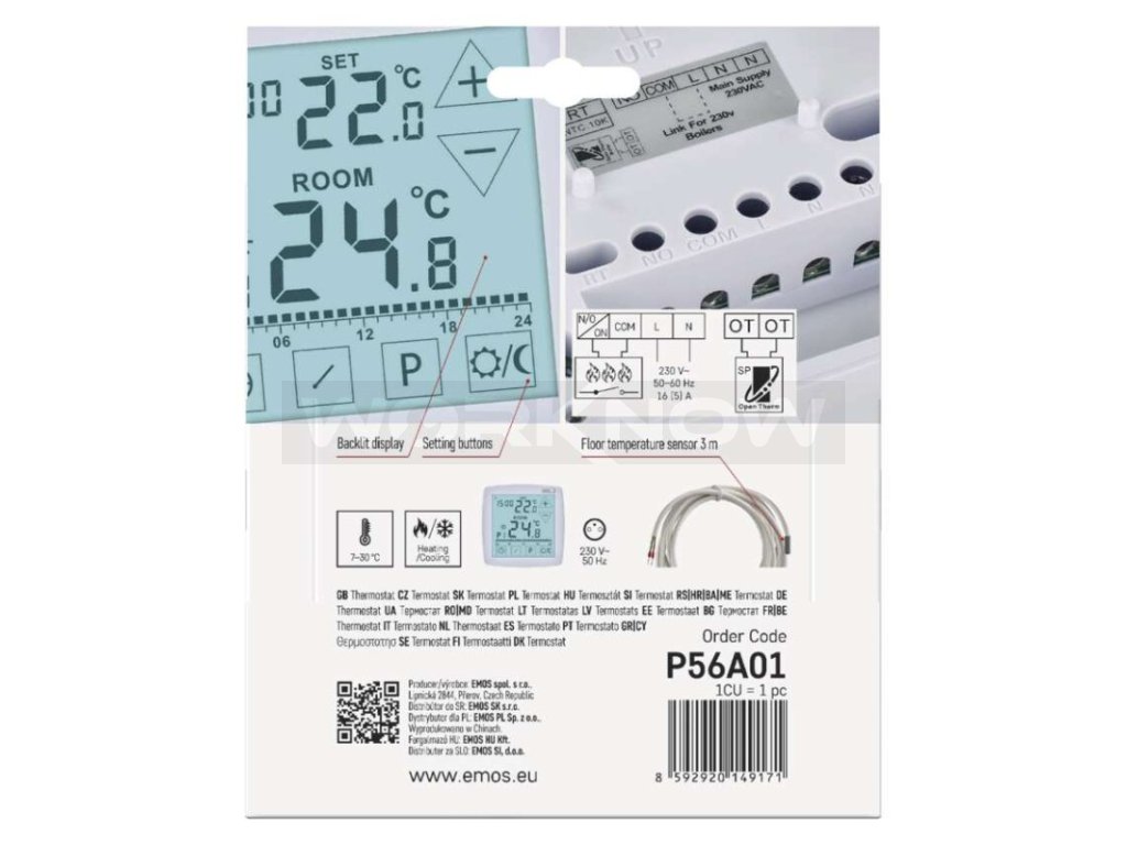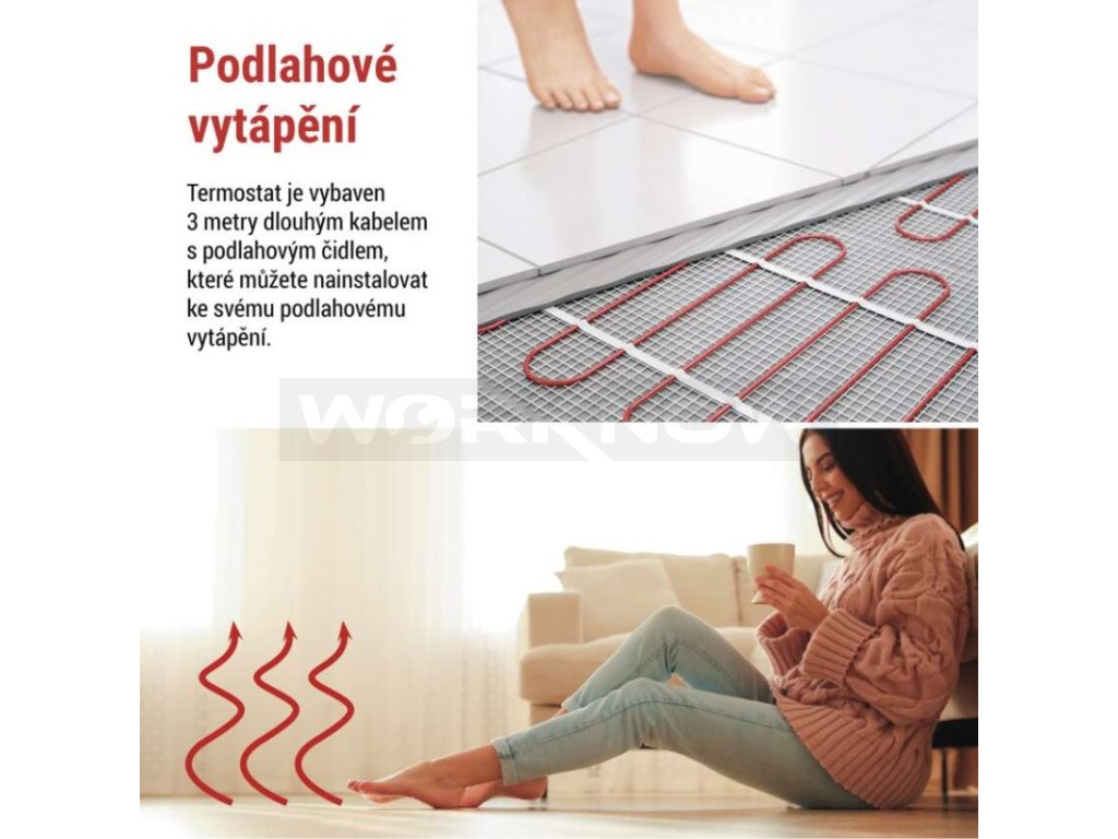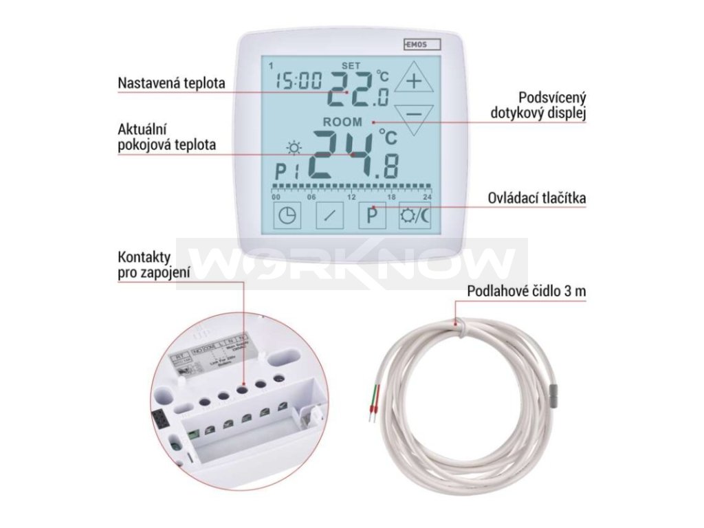 | Součást balení: | termostat, podlahové čidlo 3 m, Ø 8 mm |