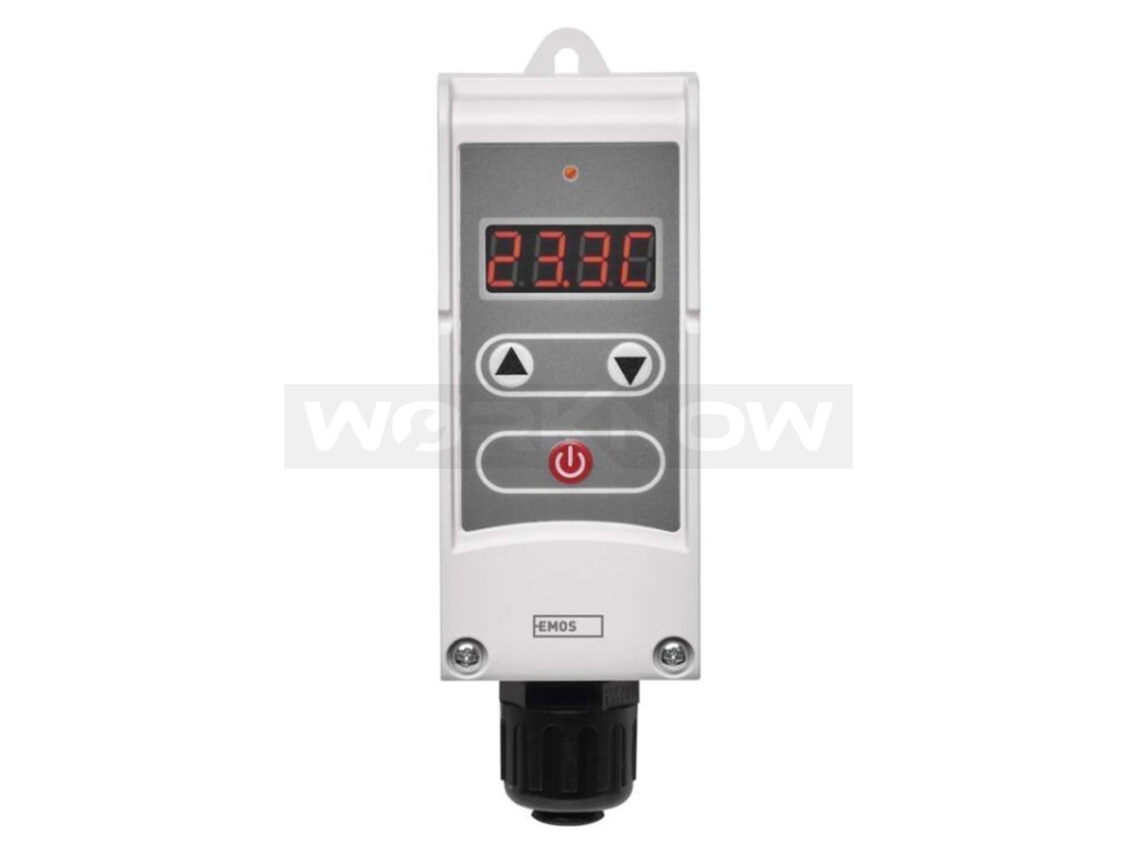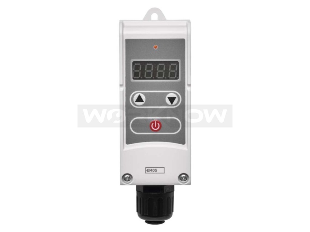 Jímkový termostat je napájen přímo ze sítě s napětím 230 V, což zajišťuje spolehlivý provoz bez nutnosti řešit výměnu baterií. Součástí termostatu je také gumová průchodka zajišťující bezpečnost a dlouhou životnost termostatu, která primárně poskytuje ochranu připojených vodičů.