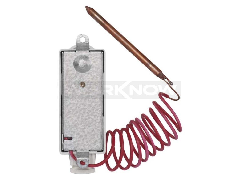 Příložný termostat s prodlouženým čidlem pro povrchovou montáž. Snímá teplotu vody v zásobnících teplé užitkové vody a nebo v topných systémech. Umožňuje regulaci teploty, hlídání teplotních omezení a funkci poklesu teploty.