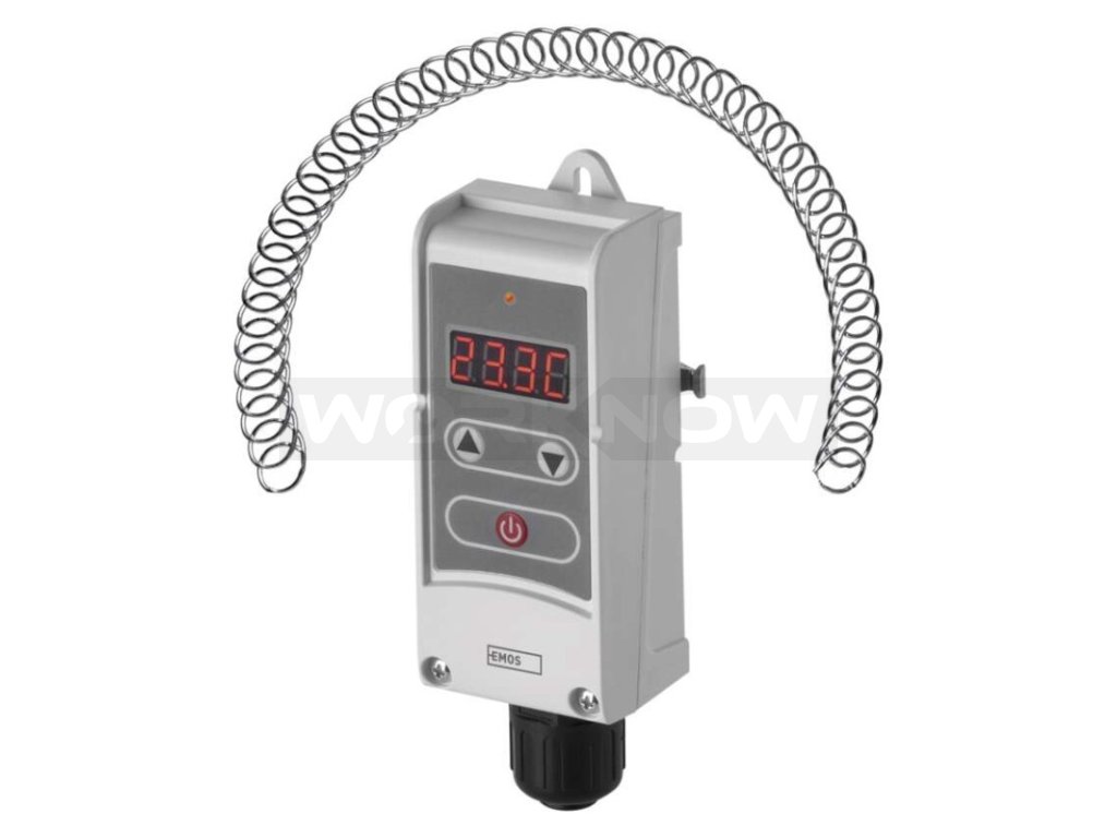 Příložný termostat pro povrchovou montáž. Snímá teplotu vody v zásobnících teplé užitkové vody a nebo v topných systémech. Umožňuje regulaci teploty, hlídání teplotních omezení a funkci poklesu teploty.
