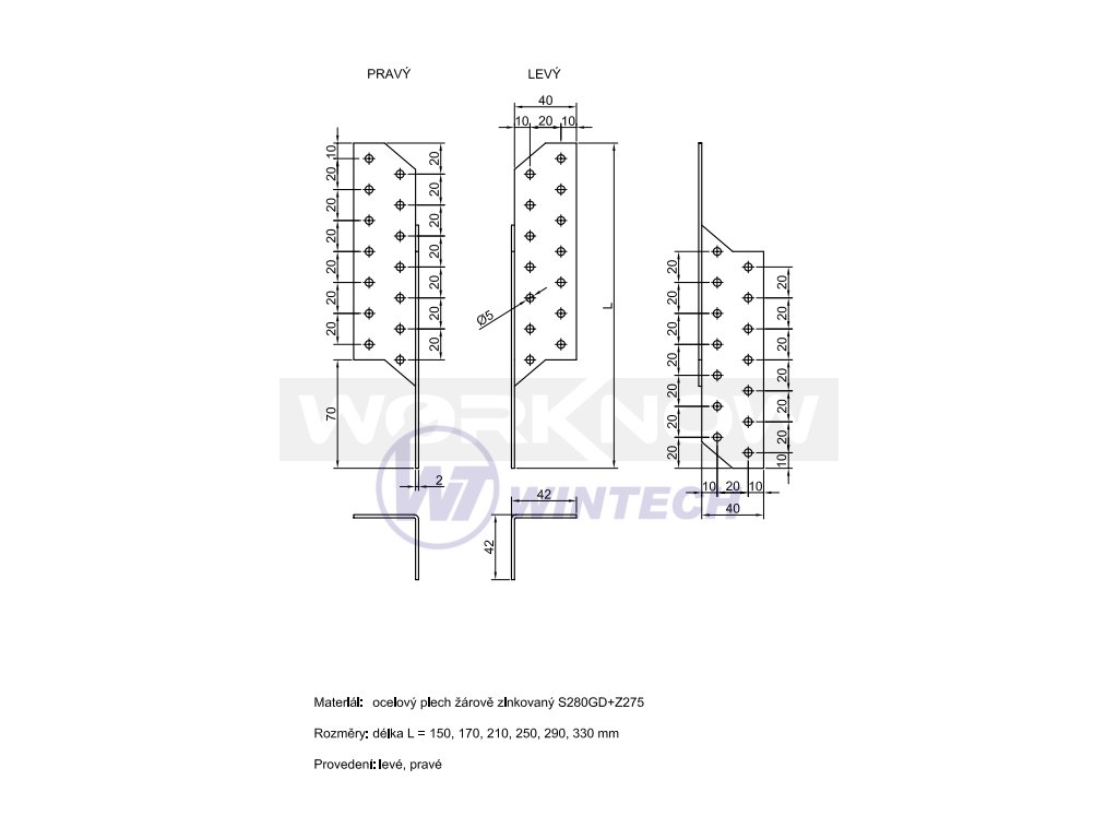 Úhelník pravý 05-31/330 BV/Ú, 40x40x330, 1 ks