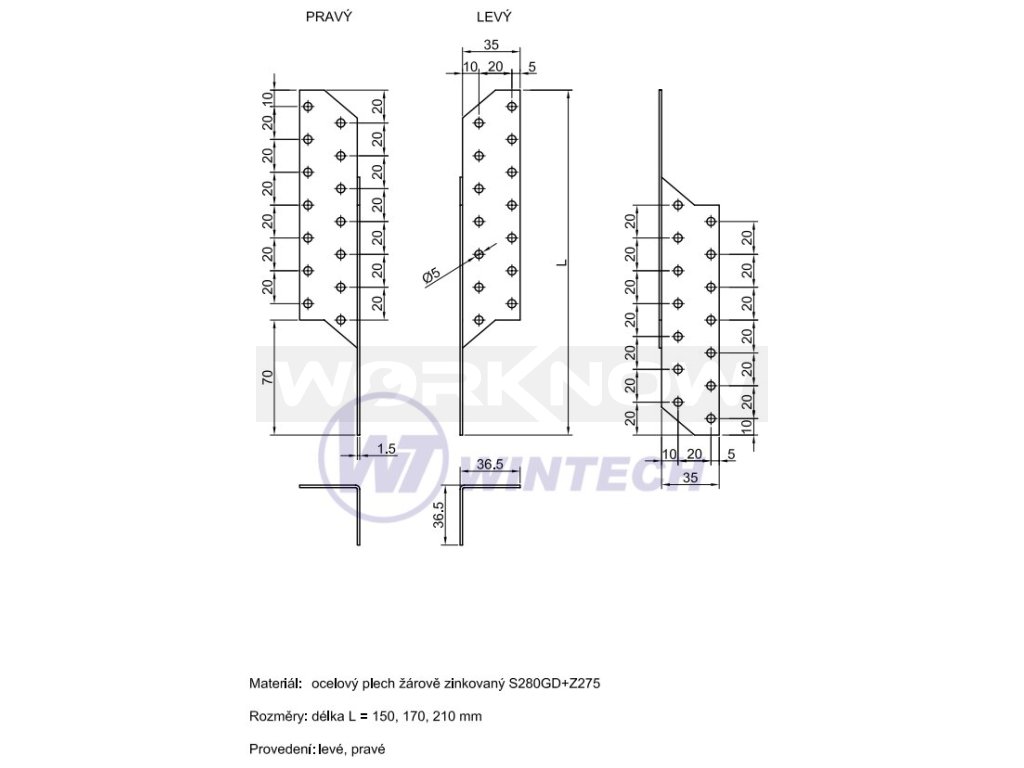 Úhelník pravý 05-32/150 BV/Ú, 35x35x150, 1 ks