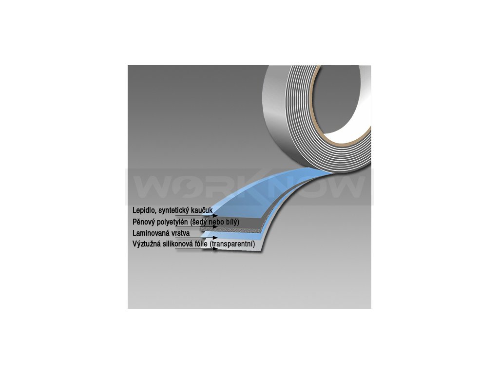 Pro těsnění spár mezi rámy oken a dveří. Rychle a jednoduše utěsní škvíry a zamezí proudění vzduchu a průniku chladu. Těsnění poklopů a krytů s požadavkem na zabránění proudění vzduchu.Páska je vyrobena z měkkého polyetylénu s jednostranným nánosem vysoce lepivého filmu. Odolává vlhku, vodě, prachu a stárnutí. Tepelná odolnost pásky po aplikaci je -40°C až +50°C. Aplikovat pásku je možné v rozsahu +2°C až +30°C.