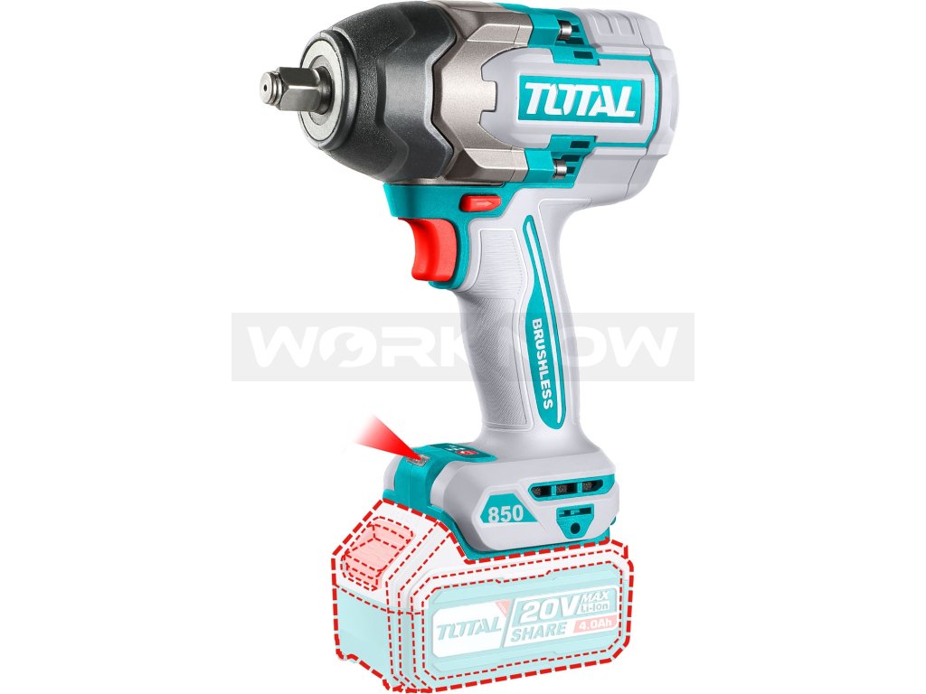Utahovák rázový AKU 1/2", brushless, 850Nm, 20 V Li-ion, bez baterie a nabíječky, industrial
