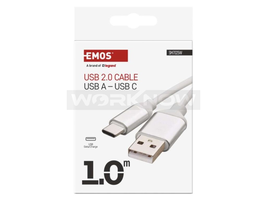 Nabíjecí a datový kabel USB-A 2.0 / USB-C 2.0, 1 m, bílý