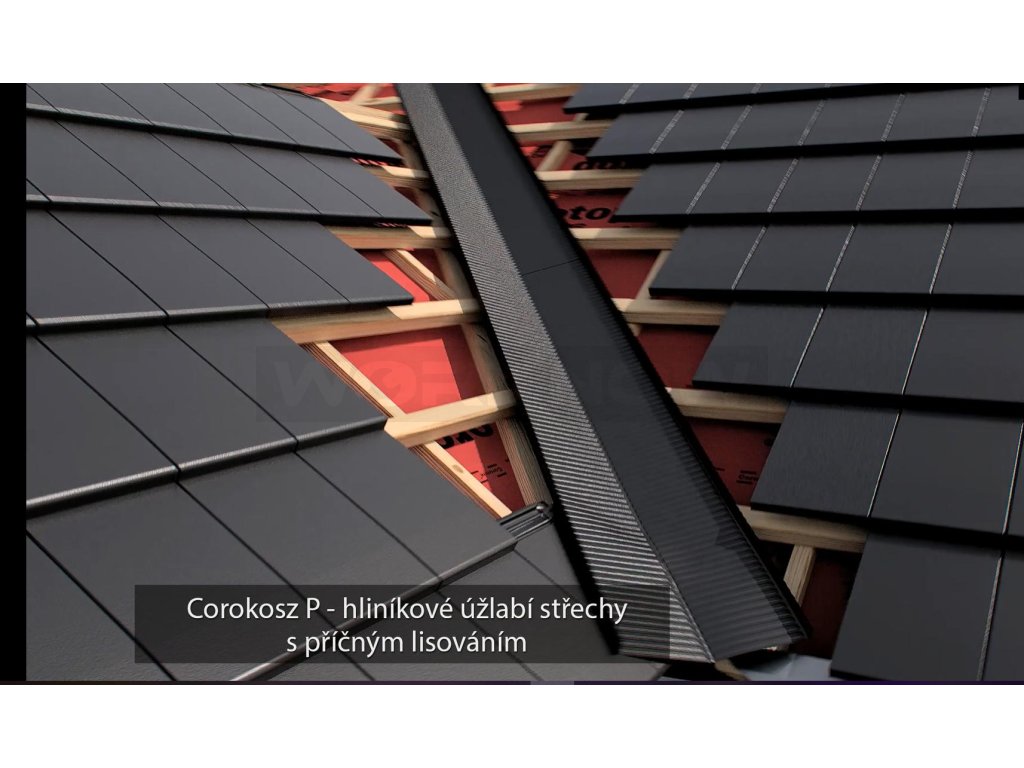 Hliníkové úžlabí střechy s příčným prolisováním pro zhotovení střešního úžlabí, které je klíčovým místem těsnosti střešního pláště. Prolisování zvyšuje tuhost úžlabí a tedy není nutné používat plné bednění pod úžlabím. Nabízíme také příchytku Corokosz K a klínové těsnění CoroCLIN, která pomáhá při jeho montáži.Použití: