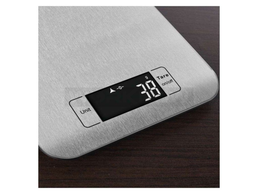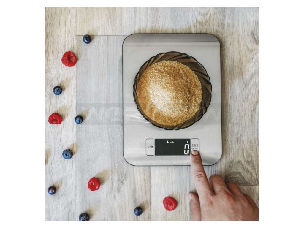 Hledáte spolehlivou kuchyňskou váhu s vysokou přesností vážení? Nerezová váha vyniká čistým designem a jednoduchým ovládáním. Výhodou je podsvícený displej s bílými číslicemi a chytrá funkce TARE, jež usnadní vážení při pečení nebo vaření. Váha je tak nejen praktickou pravou rukou každého kuchaře, ale i stylovým doplňkem moderní kuchyně.
