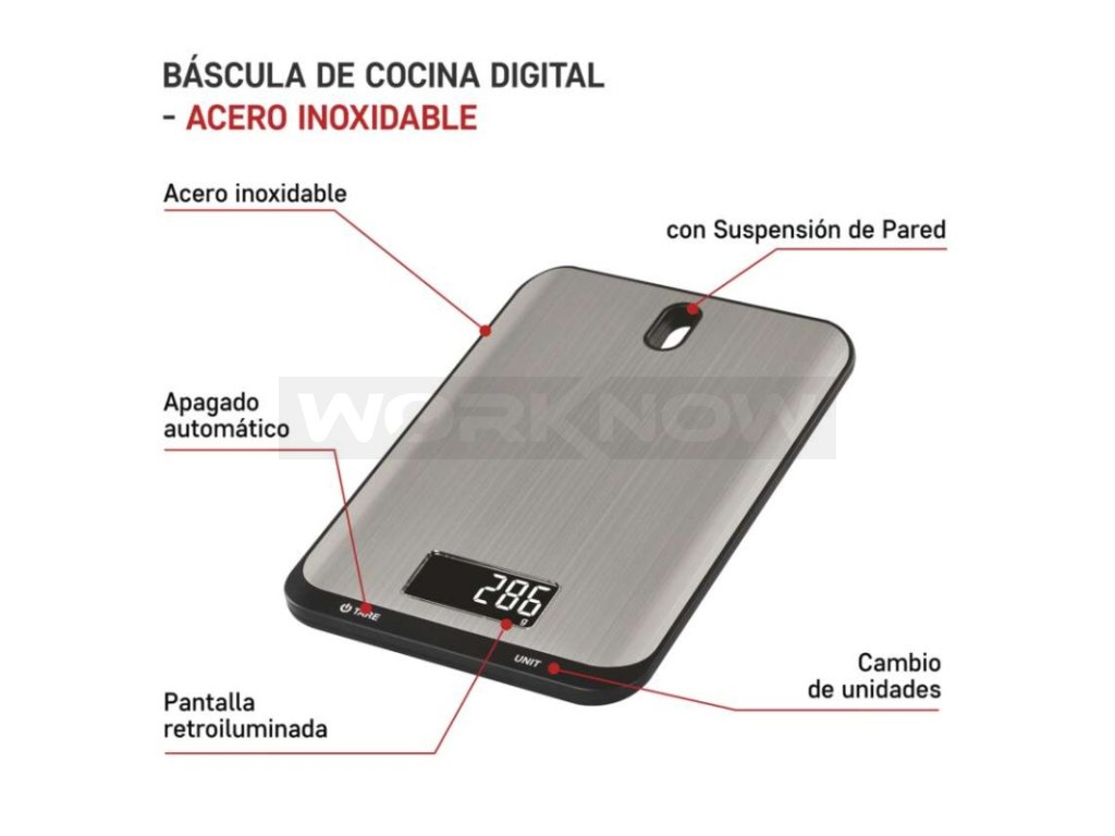 Kombinace odolného nerezu s moderním displejem a štíhlým vzhledem tvoří z váhy stylový kousek, který se bude vyjímat na každé kuchyňské lince. Praktický otvor v těle váhy umožňuje její pohodlné zavěšení. Vždy tak bude po ruce, když ji budete potřebovat. Díky zavěšení nehrozí její poškození při skladování společně s jinými těžkými kuchyňskými spotřebiči. Nespornou výhodou je také podsvícený displej, z něhož je skvěle čitelná přesná hmotnost vážené suroviny.