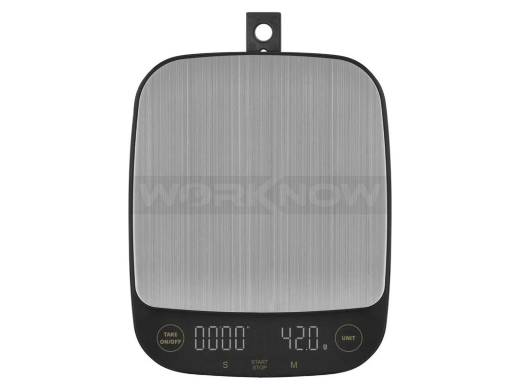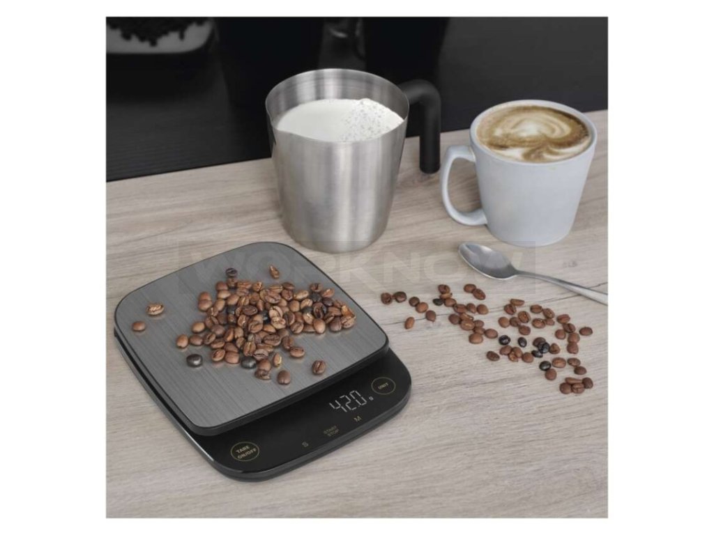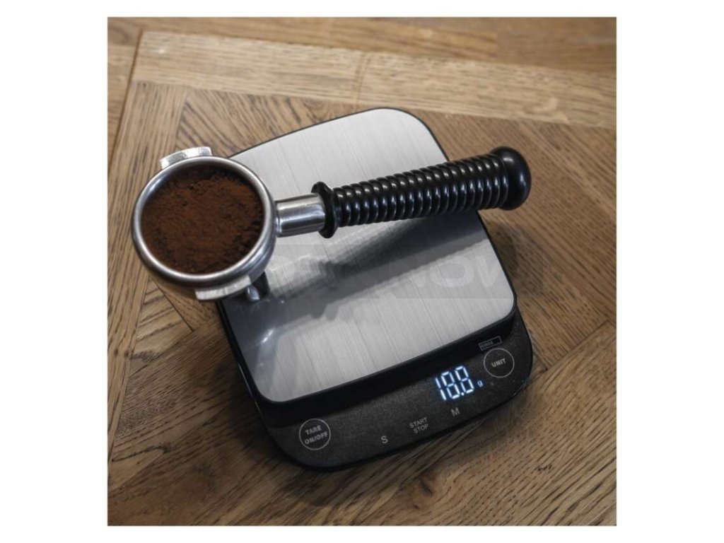 Díky velkému podsvícenému LED displeji uvidíte bez potíží i při méně příznivých světelných podmínkách. Při práci v kuchyni jistě oceníte i vestavěný časovač, který je důležitým faktorem při přípravě kávy. Váha se velmi rychle stane vaším pomocníkem, kterého budete mít rádi po ruce.