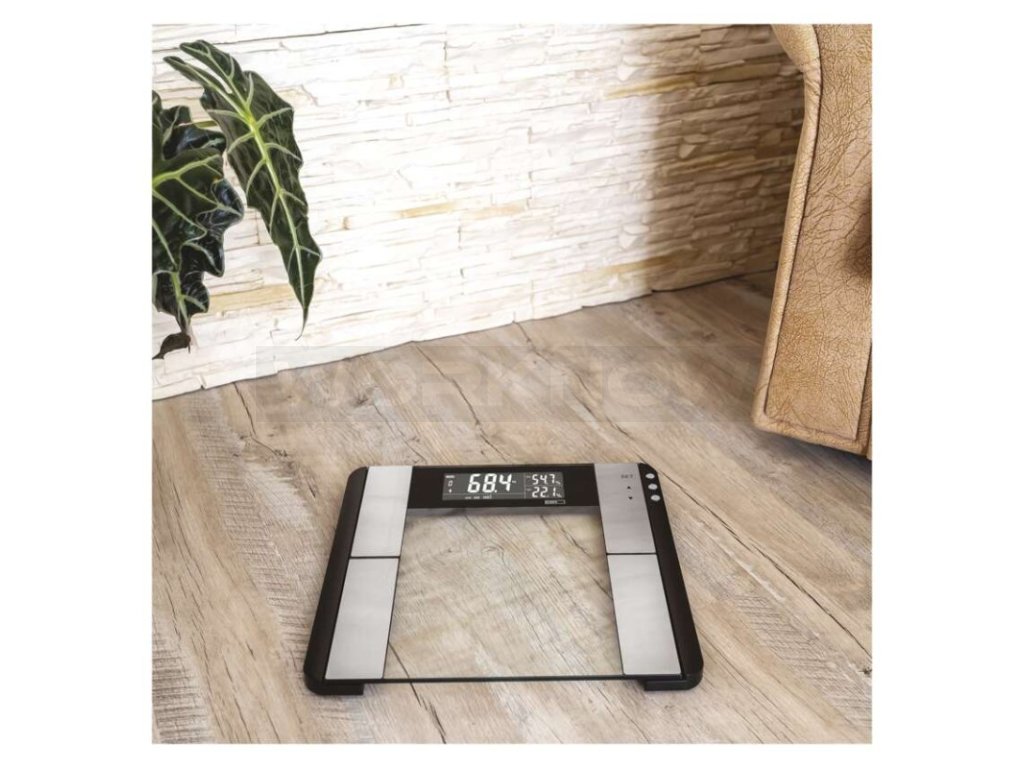 Mějte svou kondici pod kontrolou každý den. Osobní váha není pouze pro ty, kteří drží dietu. S moderní váhou totiž nesledujete jen kilogramy, ale také množství tuku, vody a svalové hmoty v těle. Po zadání vstupních údajů získáte BMI (Body Mass Index), který pro vás bude hlavním ukazatelem na cestě k vysněné figuře. Díky přesnosti vážení na 100 g se můžete radovat z každého svého pokroku. Maximální zátěž je 150 kg, váha má elegantní design, paměť až pro 10 osob a bezpečnostní tvrzené sklo. Váha se stane osobním koučem, který sleduje změny vaší váhy a doporučí vám ideální denní příjem kcal.