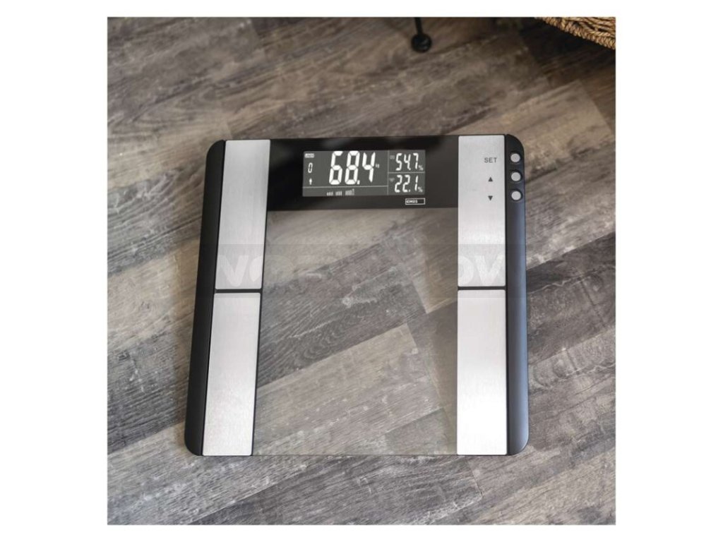 Digitální osobní váha s výpočtem BMI indexu (množství tuku, vody a svalové hmoty v těle).