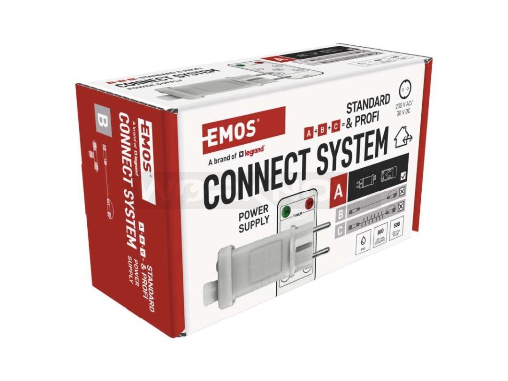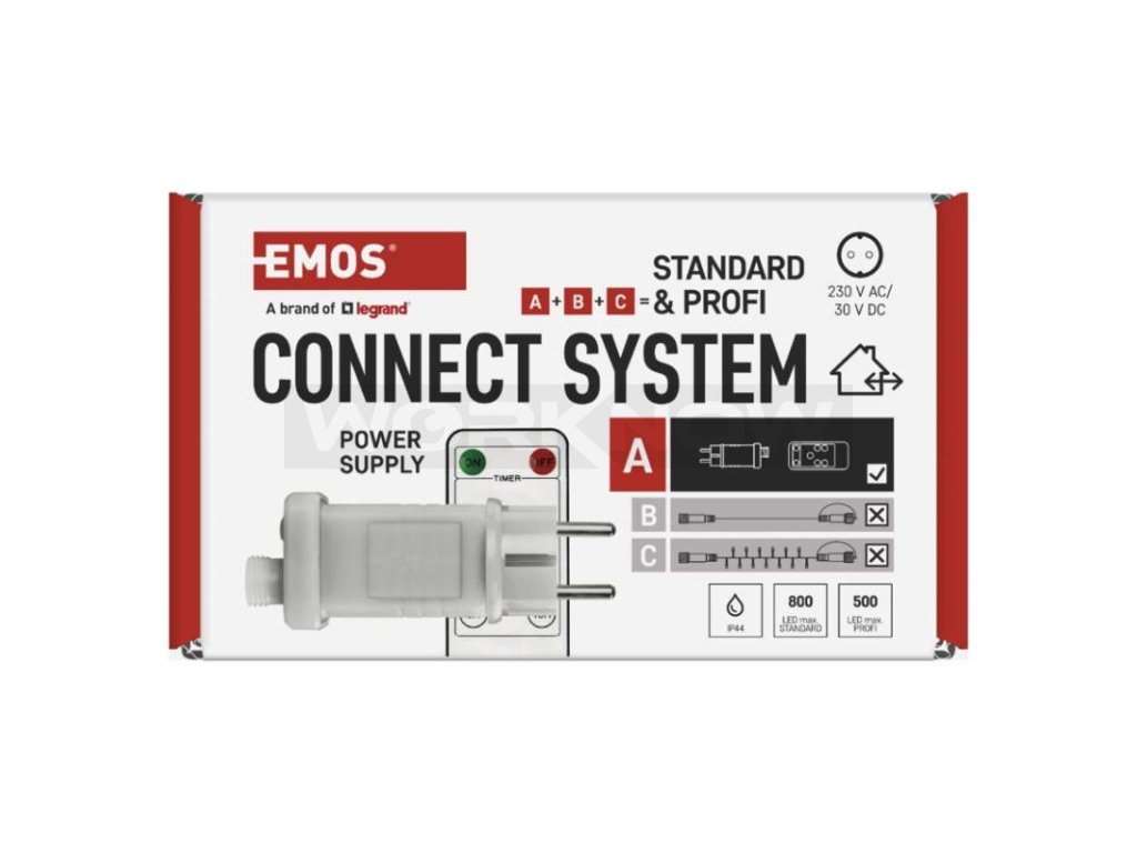 Na jeden adaptér lze napojit až 800 LED světýlek systému CONNECT SYSTEM STANDARD nebo 500 LED světýlek systému CONNECT SYSTEM PROFI.