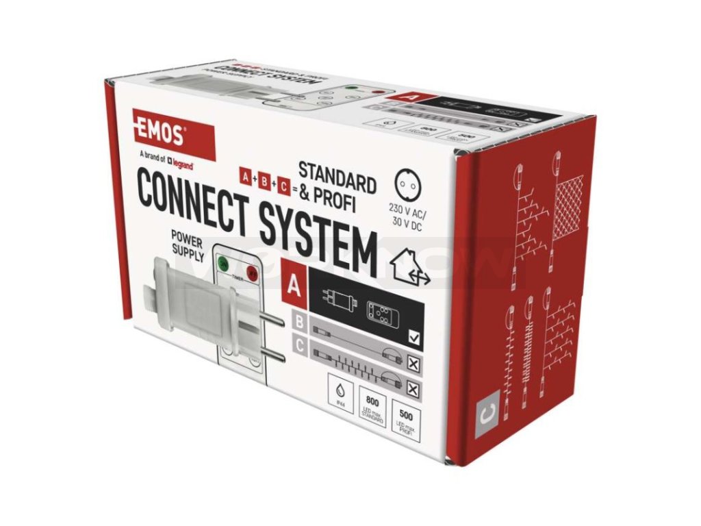 Ať už jde o vánoční výzdobu domova nebo vytvoření magické atmosféry na svatbách a oslavách. Spojovací osvětlení CONNECT SYSTEM ve verzích STANDARD a PROFI nabízí nekonečné možnosti dekorování. Základními prvky jsou napájecí zdroje (A), prodlužovací kabely, rozbočovače (B) a světelné prvky (C), které lze mezi sebou vzájemně propojovat a kombinovat. Tento typ osvětlení je ideální volbou pro velkolepou venkovní výzdobu, kde běžné délky řetězů nejsou dostačující