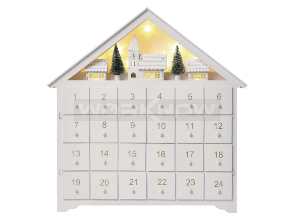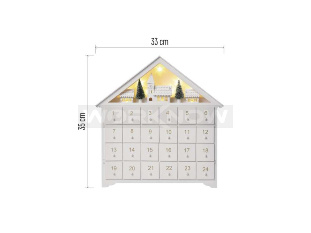 LED adventní kalendář dřevěný, 35x33 cm, 2x AA, vnitřní, teplá bílá, časovač