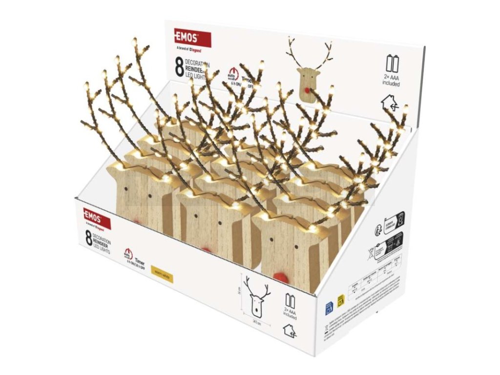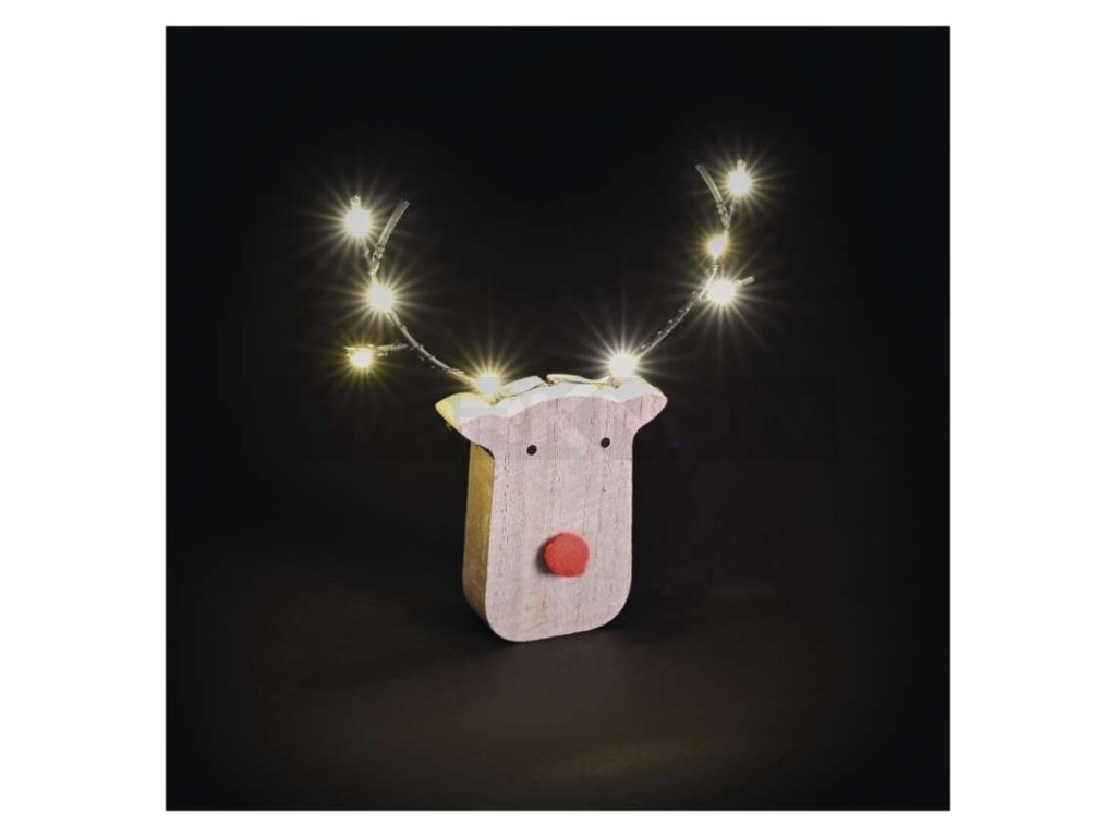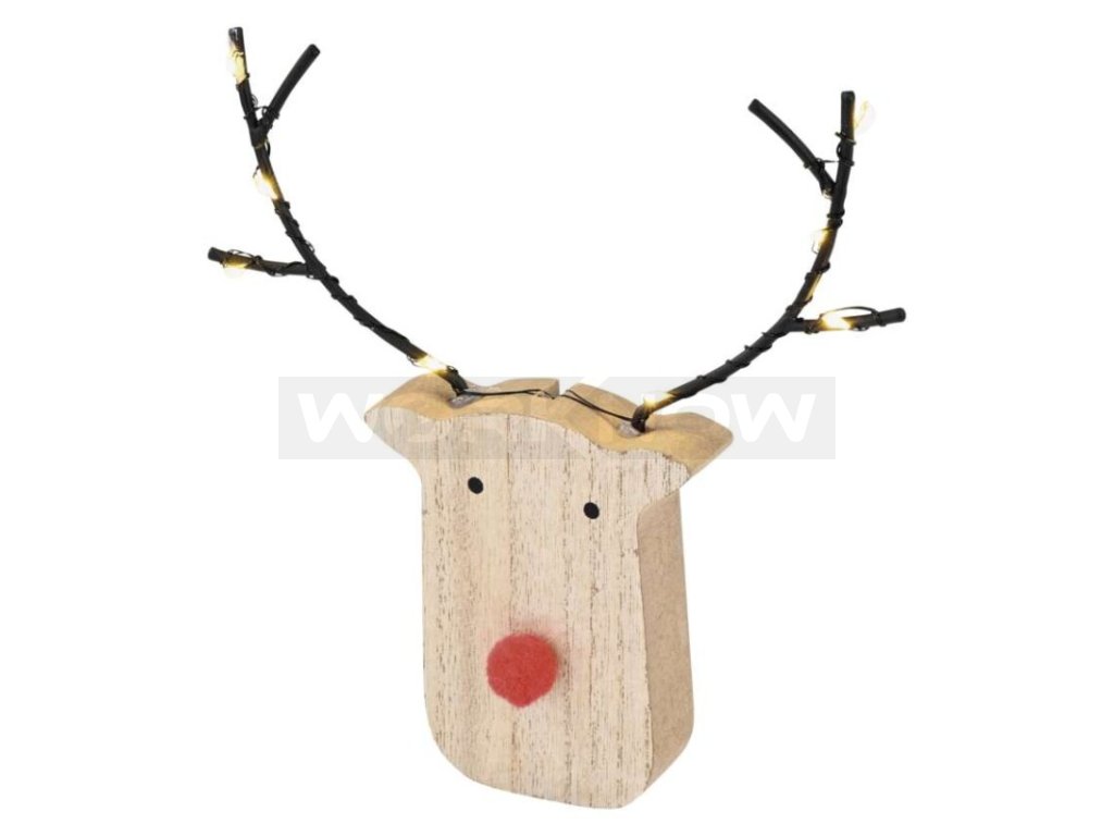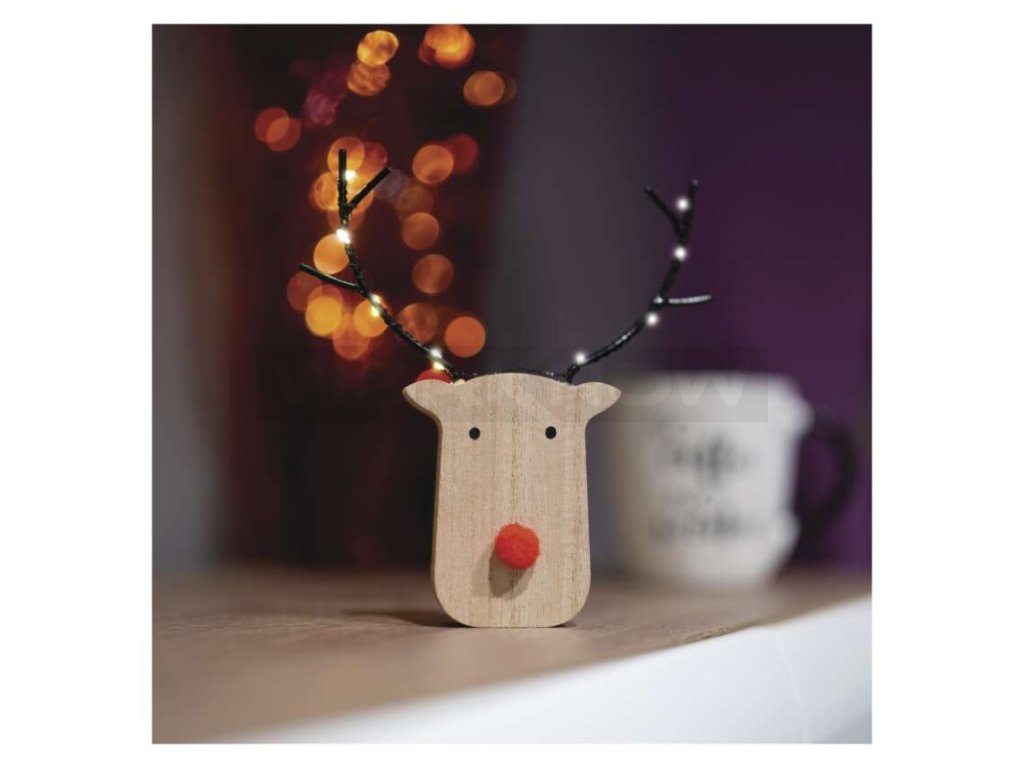LED dekorace dřevěná – sob, 16 cm, 2x AAA, vnitřní, teplá bílá, časovač,12 ks, display box