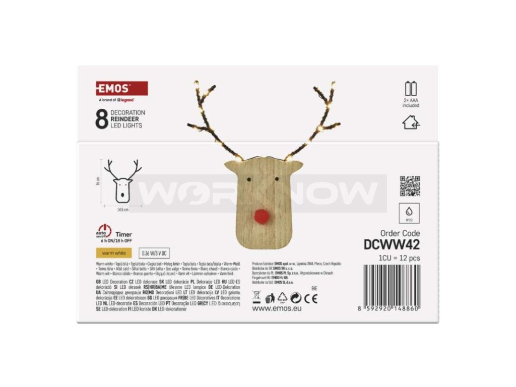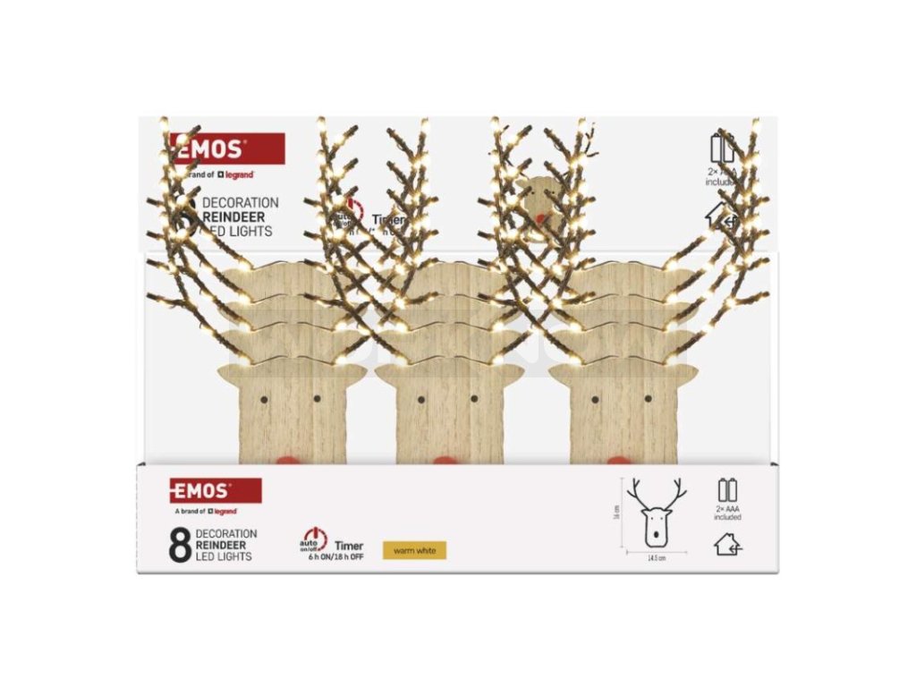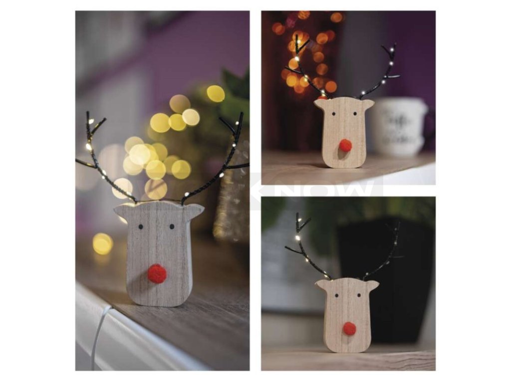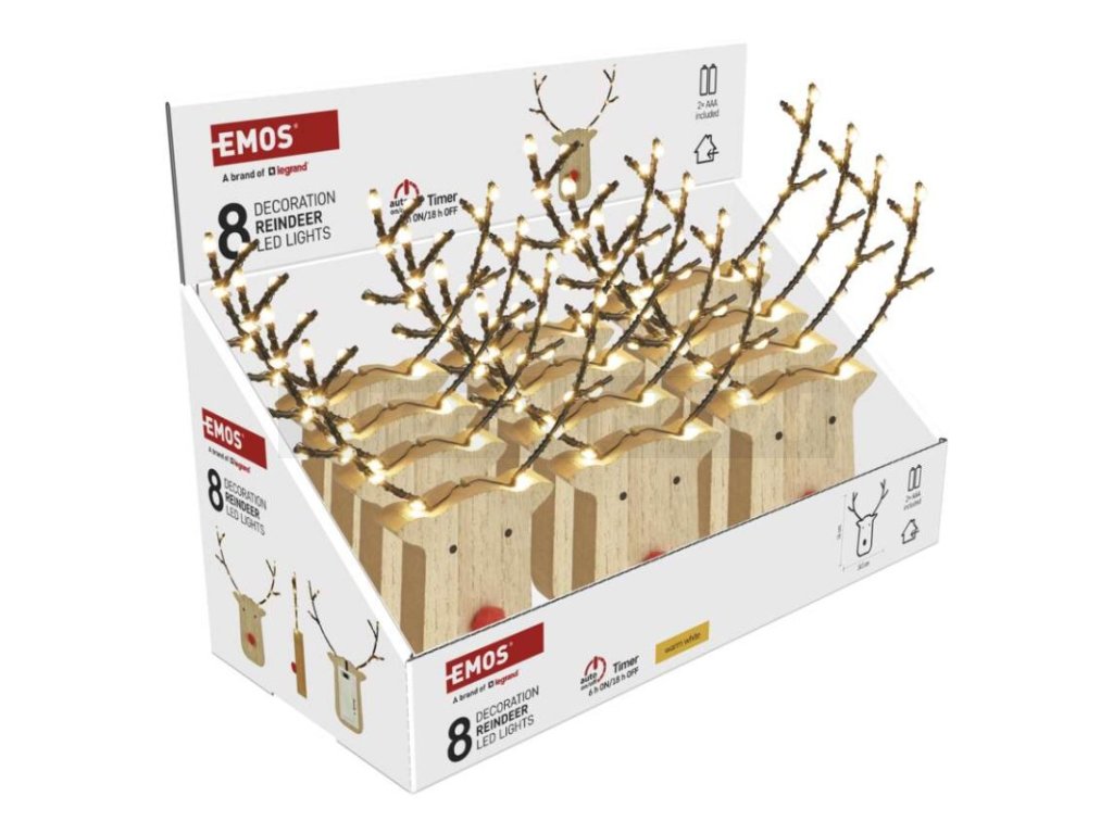 LED dekorace dřevěná – sob, 16 cm, 2x AAA, vnitřní, teplá bílá, časovač,12 ks, display box