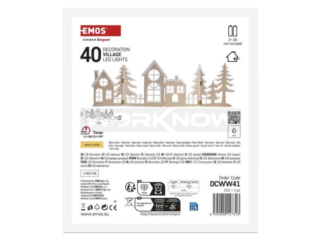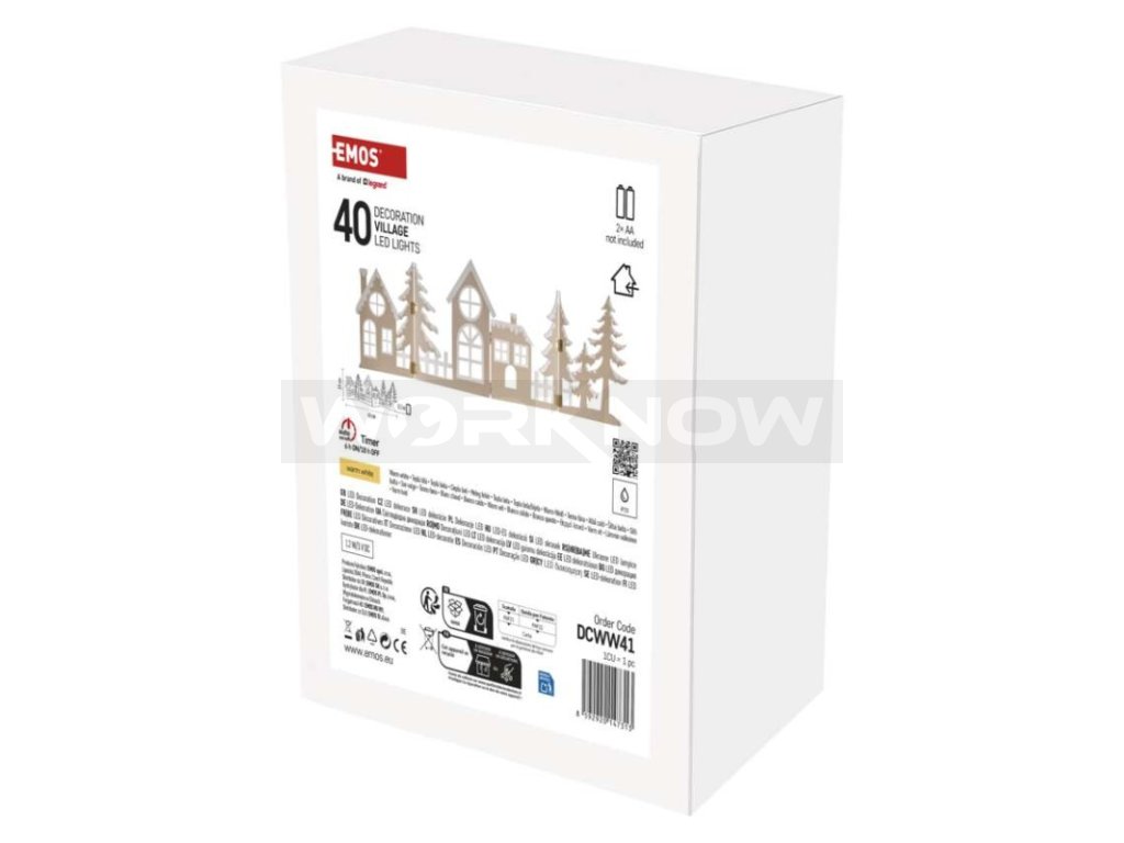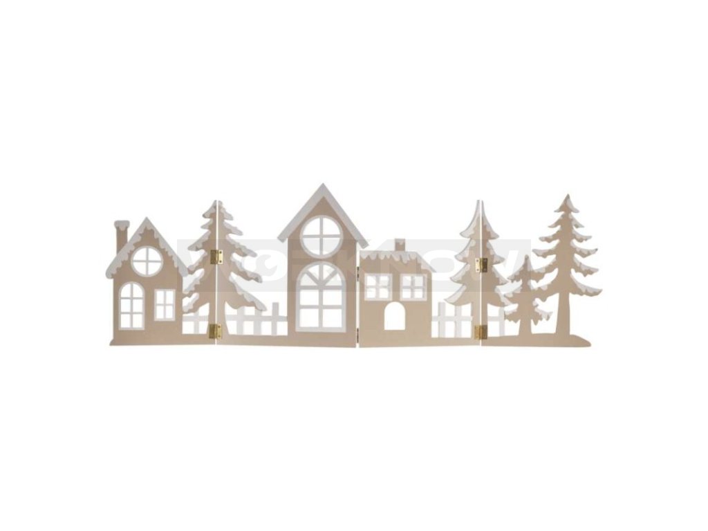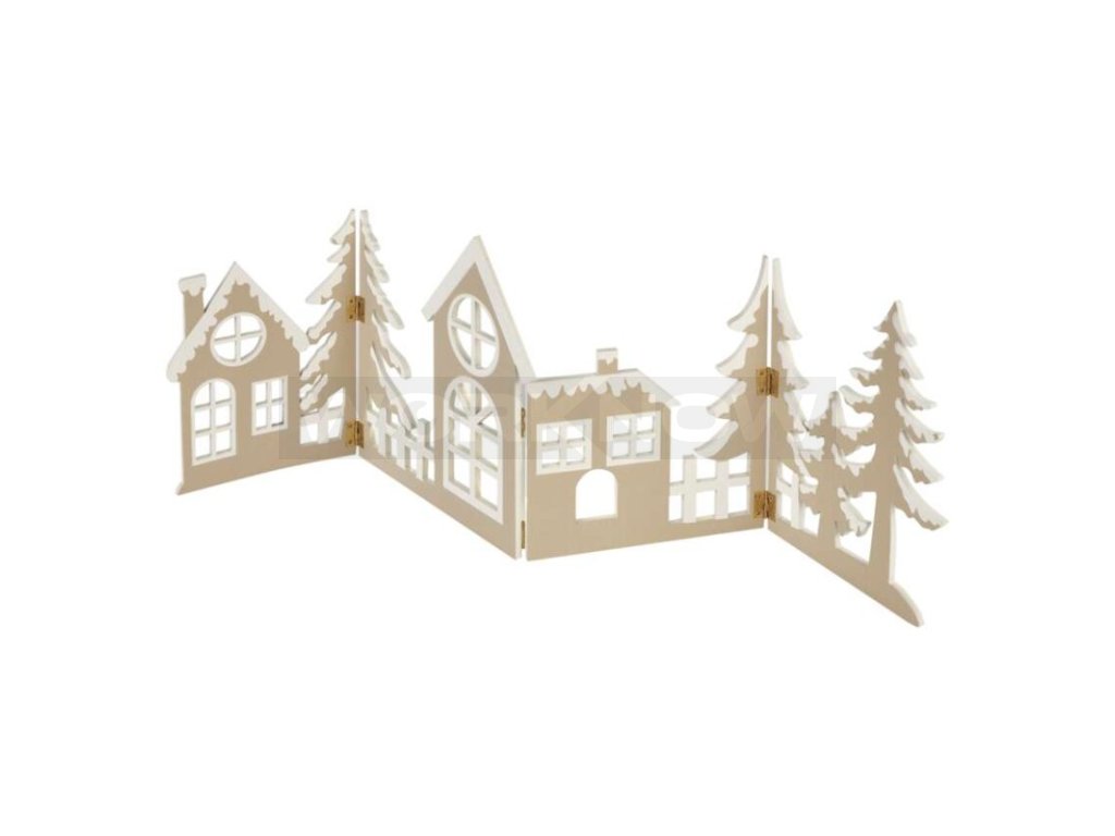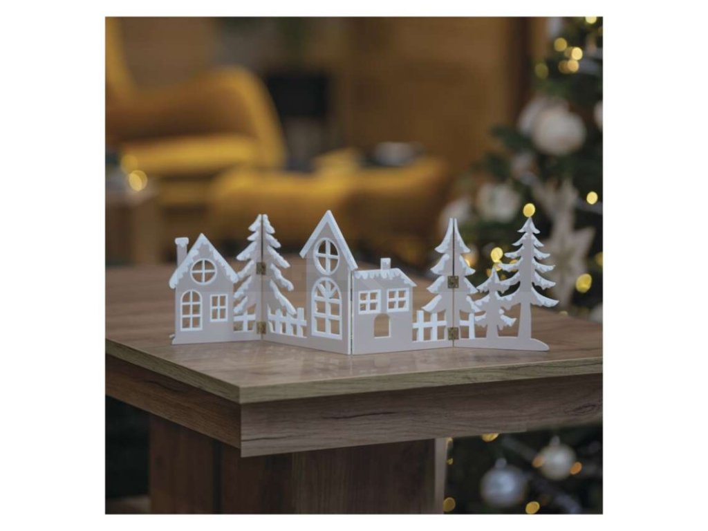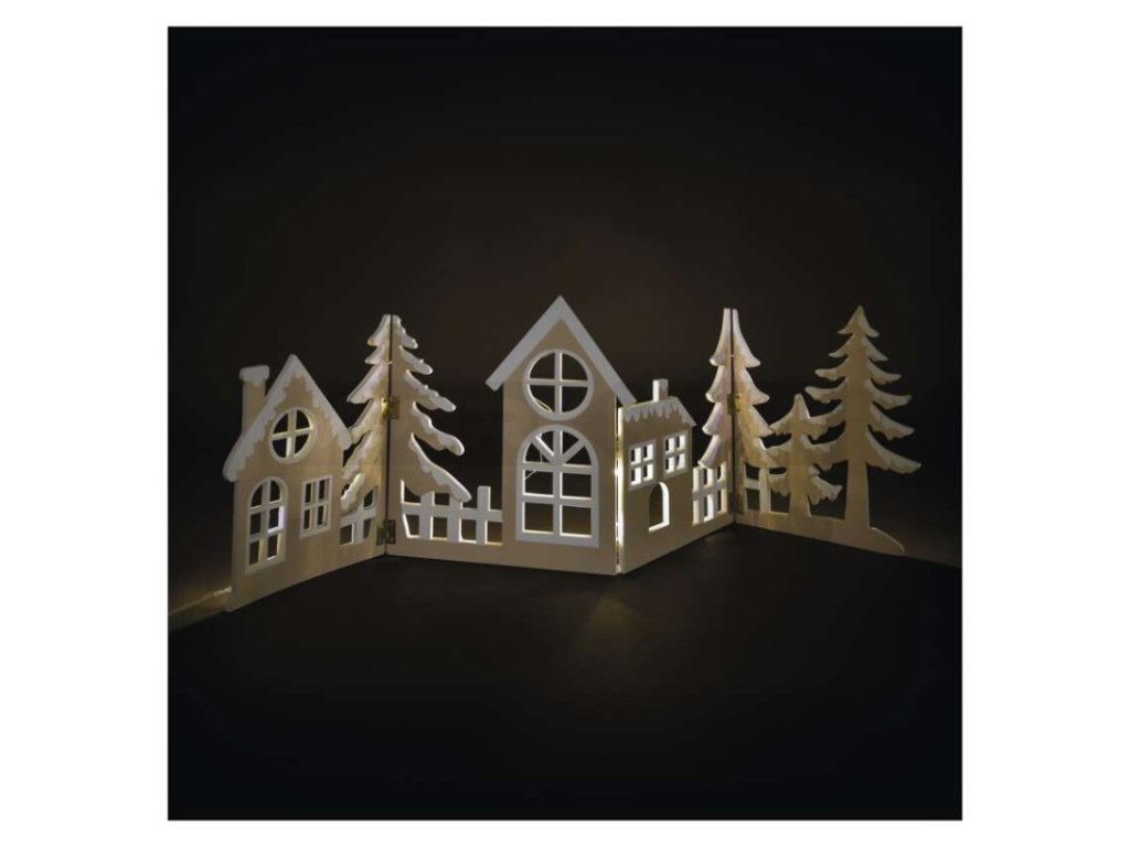 LED dekorace dřevěná - vesnička, 60 cm, 2x AA, teplá bílá, časovač