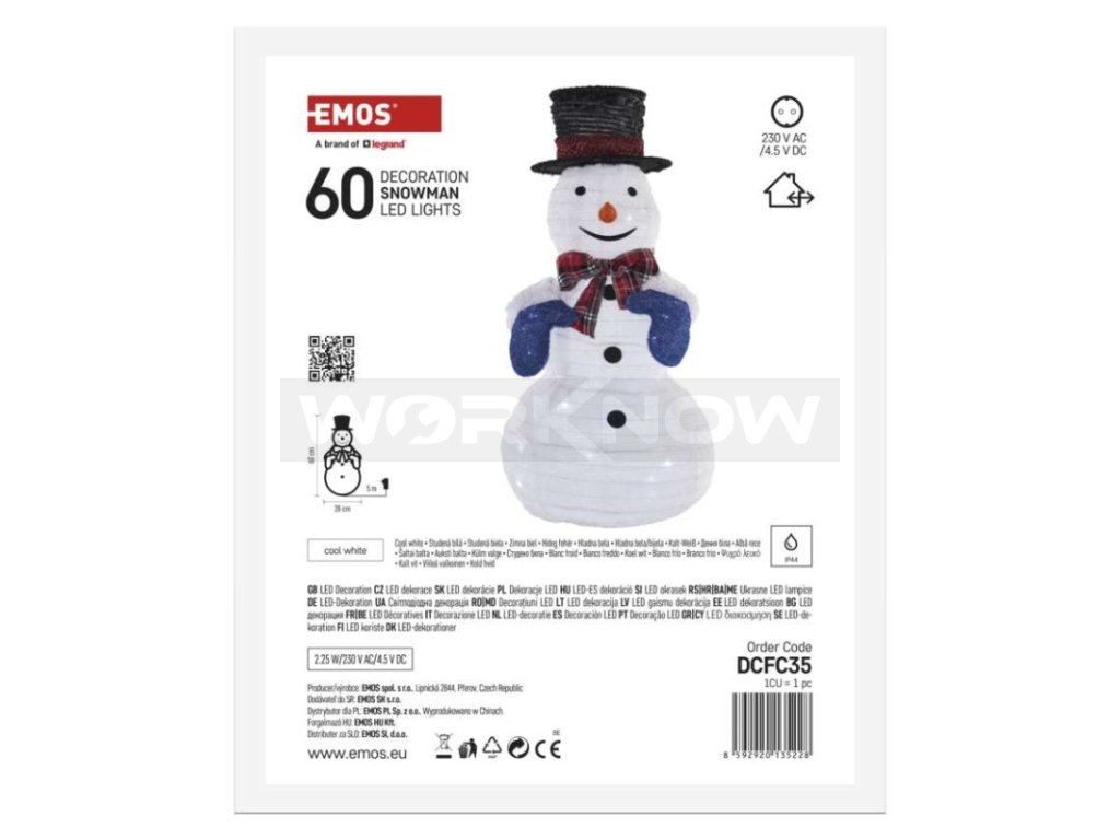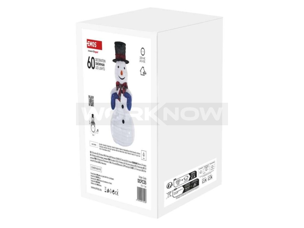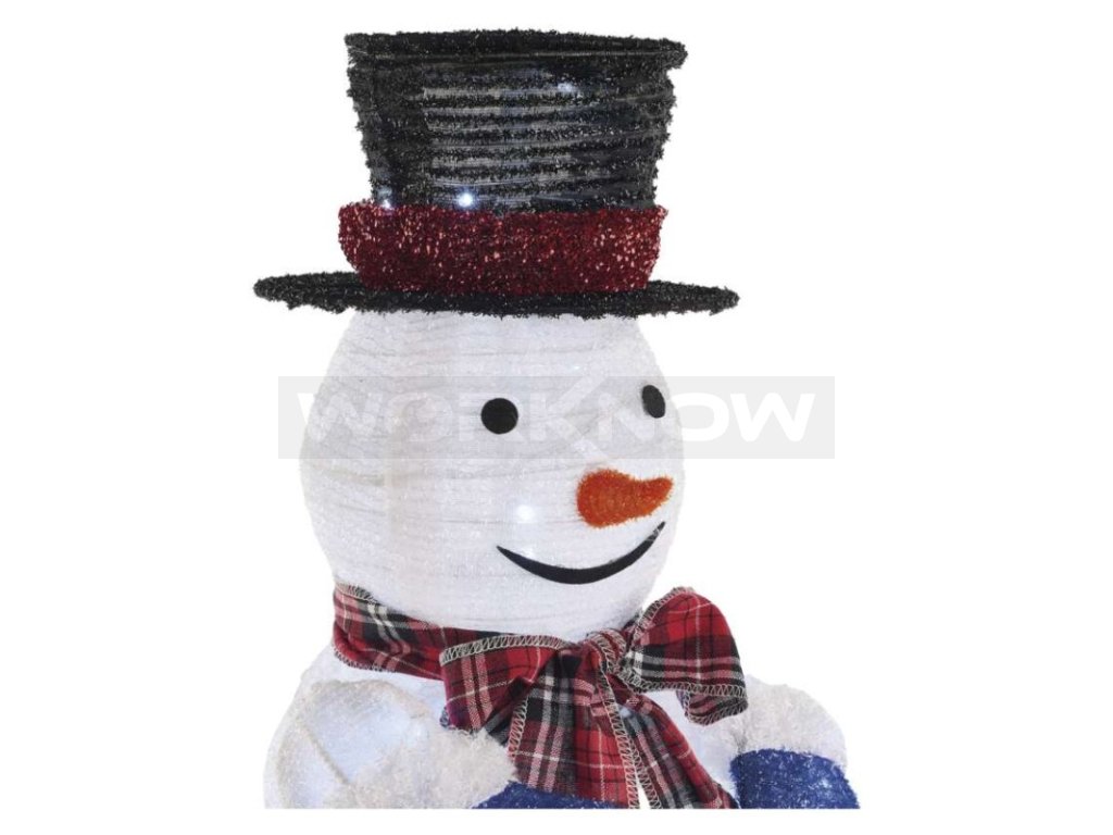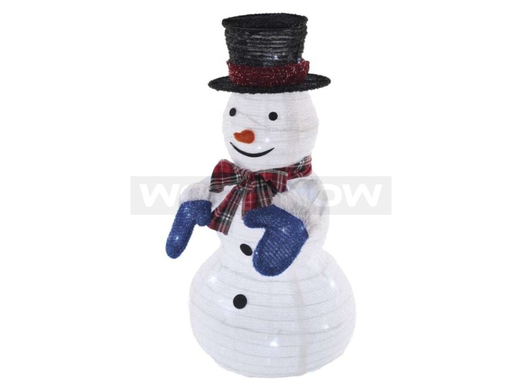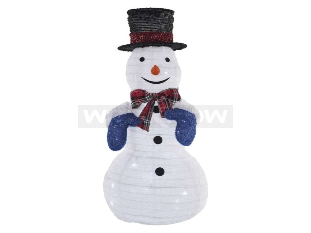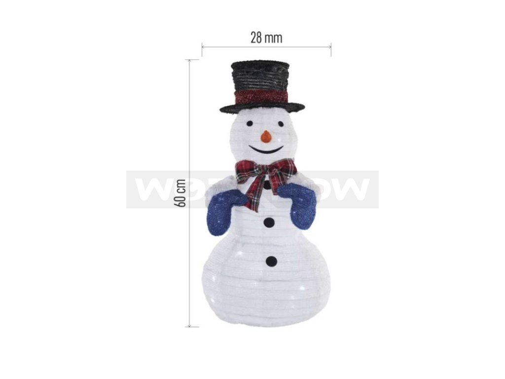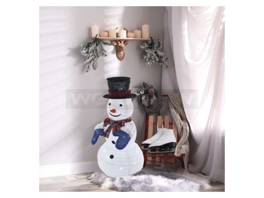 Sněhulák je se zimou a Vánocemi pevně spjat jako třeba vánoční stromeček. Náš zhruba 60 cm vysoký sněhulák plný oblých tvarů a příjemných barev rozzáří každý domov. Nechybí mu ani oranžový nos, rukavice a klobouk. Ve tmě bude sněhulák zářit studenou bílou barvou. Dekorace je určená především do interiéru. Pokud jej však umístíte do venkovních prostorů, které jsou chráněny před nepříznivými povětrnostními podmínkami, může vám zdobit také třeba balkon.