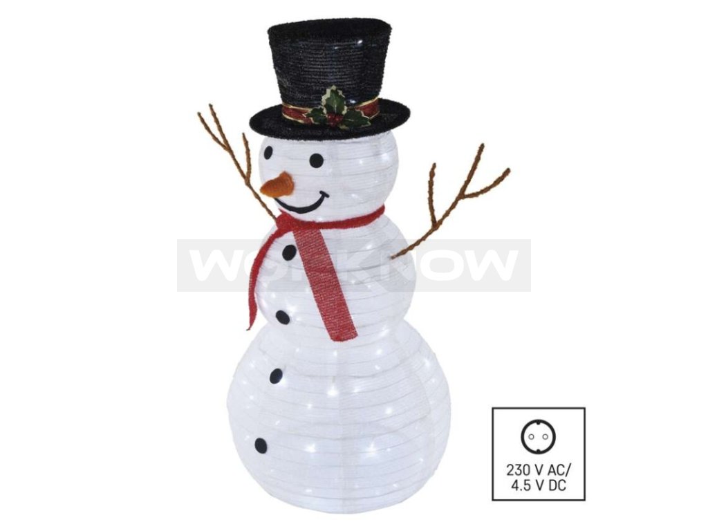 Venkovní skládací sněhulák svým originálním designem oživí vaši zahradu, pergolu, terasu či předzahrádku a promění je v pohádková zákoutí. Světlo studené bílé barvy krásně vynikne za každého počasí a díky zvýšené voděodolnosti sněhulák hravě zvládne déšť či sněhovou nadílku. Venkovními prostory jeho využití nekončí, použít jej můžete i pro výzdobu rozlehlejších obytných či komerčních prostor v interiéru. Díky dlouhému napájecímu kabelu o délce 5 m je jeho zapojení do elektrické sítě hračkou.