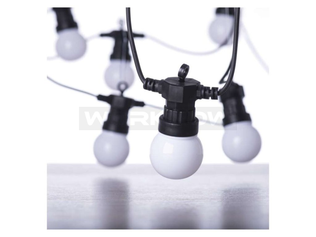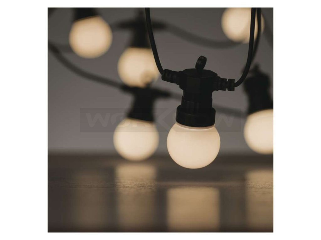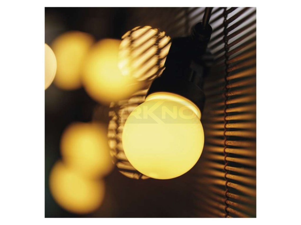 Venkovní světelný řetěz s párty žárovkami svítícími teplou bílou barvou doladí útulnou atmosféru při posezení na balkoně, terase, venkovních oslavách, svatbách, kulturních akcích apod. Při správně zvoleném počtu řetězů a žárovek dokáže asistovat tradičnímu osvětlení a udělá tak každý den výjimečným. Stále častěji je tento typ řetězu využíván jako stylové osvětlení na zahrádkách či v interiérech restaurací, kde vkusně ozdobí i jinak obyčejný prostor. Díky dlouhému napájecímu kabelu o délce 5 m je jeho zapojení do elektrické sítě hračkou.
