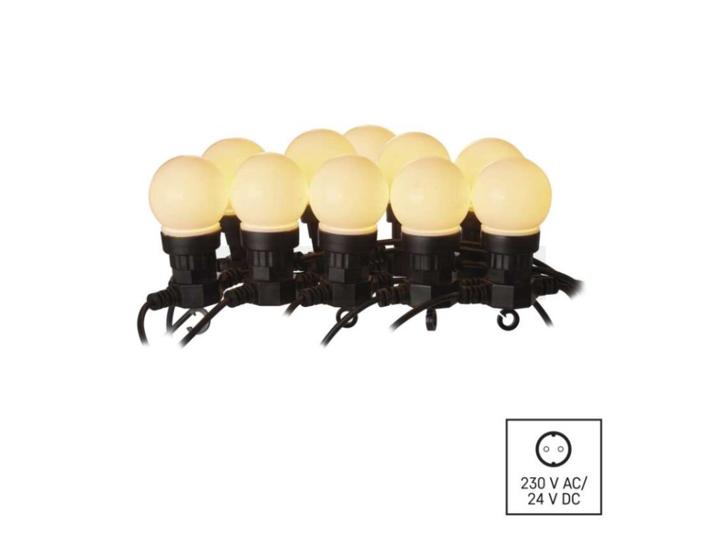 LED světelný řetěz – 10x párty žárovky mléčné, 5 m, venkovní i vnitřní, teplá bílá