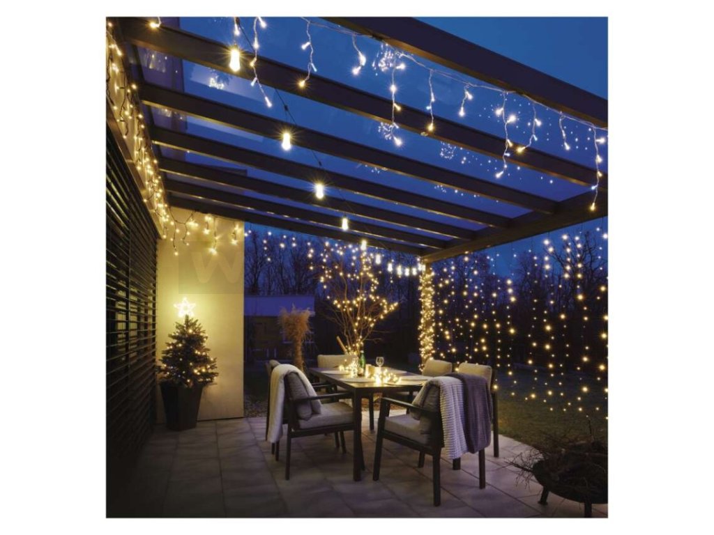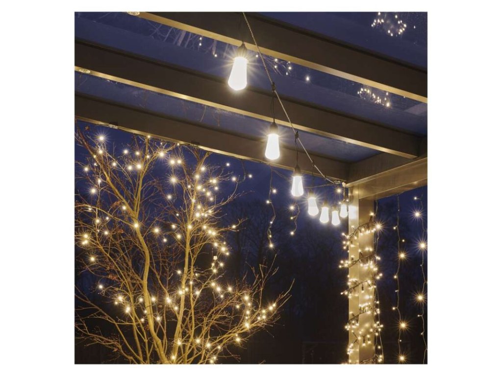 Venkovní světelný řetěz s párty žárovkami svítícími teplou bílou barvou doladí útulnou atmosféru při posezení na balkoně, terase, venkovních oslavách, svatbách, kulturních akcích apod. Při správně zvoleném počtu řetězů a žárovek dokáže asistovat tradičnímu osvětlení a udělá tak každý den výjimečným. Stále častěji je tento typ řetězu využíván jako stylové osvětlení na zahrádkách či v interiérech restaurací, kde vkusně ozdobí i jinak obyčejný prostor. Díky dlouhému napájecímu kabelu o délce 5 m je jeho zapojení do elektrické sítě hračkou.