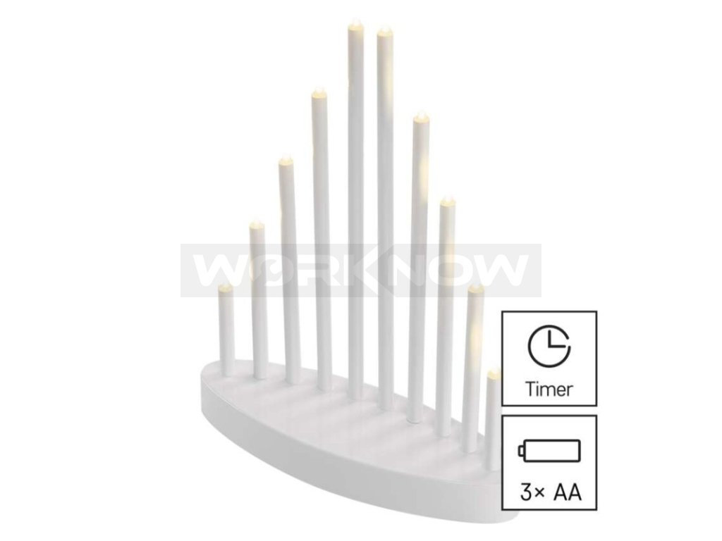 LED svícen bílý, 24,5 cm, 3x AA, vnitřní, teplá bílá, časovač