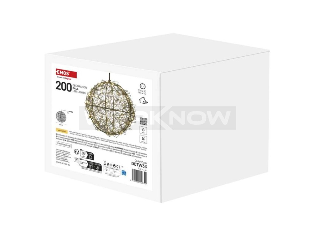 LED vánoční koule – 200 LED, venkovní i vnitřní, teplá bílá